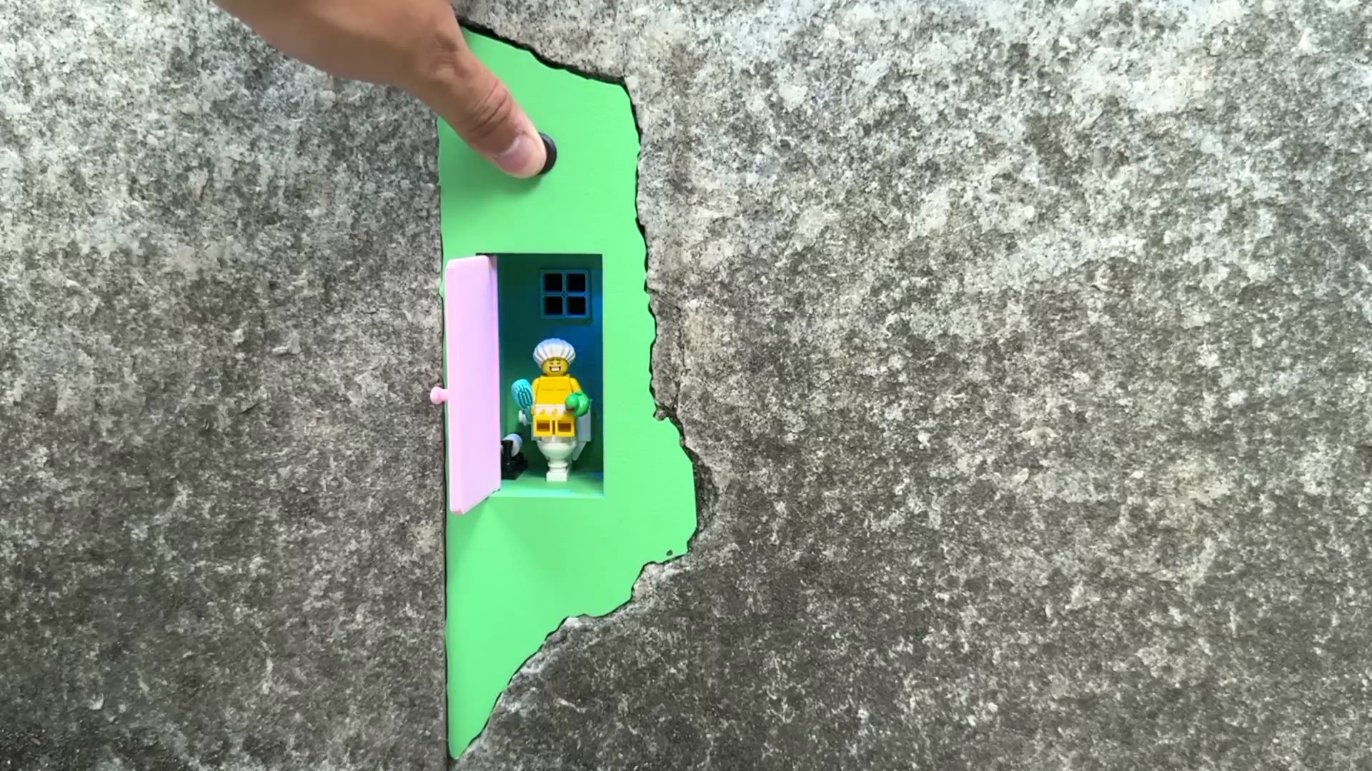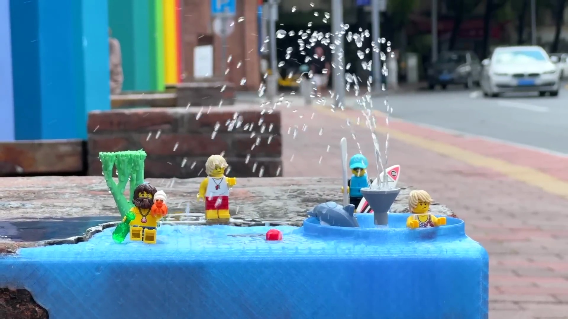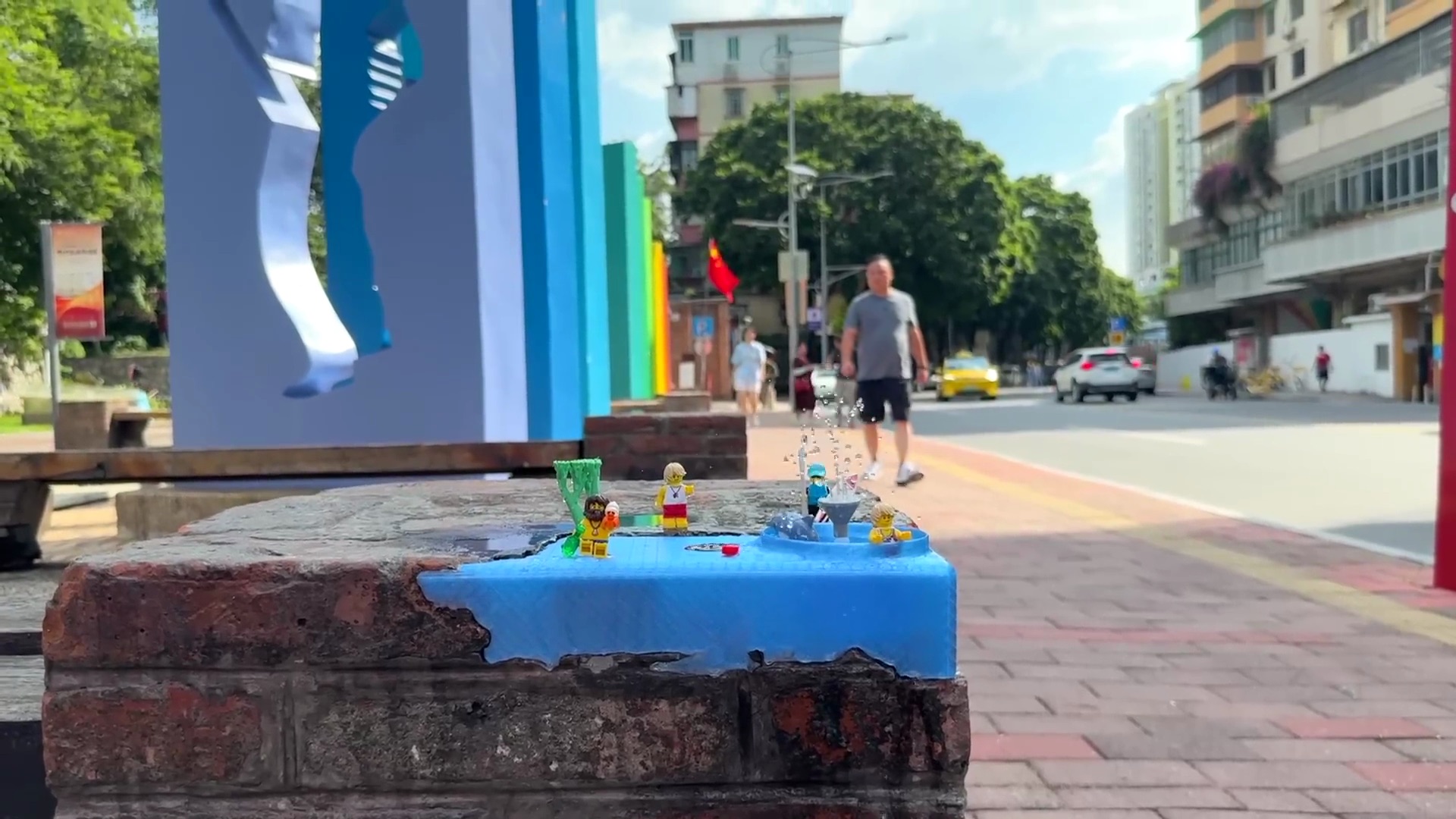 Avec ses jouets imprimés en 3D, Aboringday signe une forme d’art de rue technologique et ludique. De sa prison LEGO au gramophone miniature en passant passant par sa fontaine musicale ou encore ses toilettes pour figurines, les installations ne réparent pas vraiment le béton, mais elles réparent notre regard sur la ville : elles transforment l’usure en curiosité, la routine en sourire.