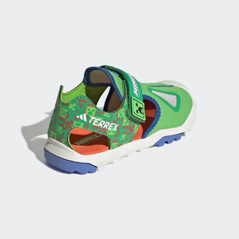 Même les Adilette trouvent leur place dans cette aventure, avec une version ornée du visage du Creeper, pensée comme une pièce fun et immédiatement reconnaissable.