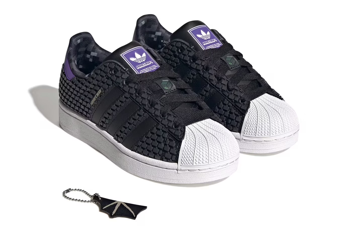 De son côté, la Campus 00s s’approprie l’esthétique de l’Œil de l’Ender, avec un contraste noir et vert néon qui renvoie à l’objet clé permettant d’accéder à la dimension finale. Quant à la Superstar II, elle s’habille de textures sombres et écailleuses inspirées de l’Ender Dragon, figure mythique du boss final.