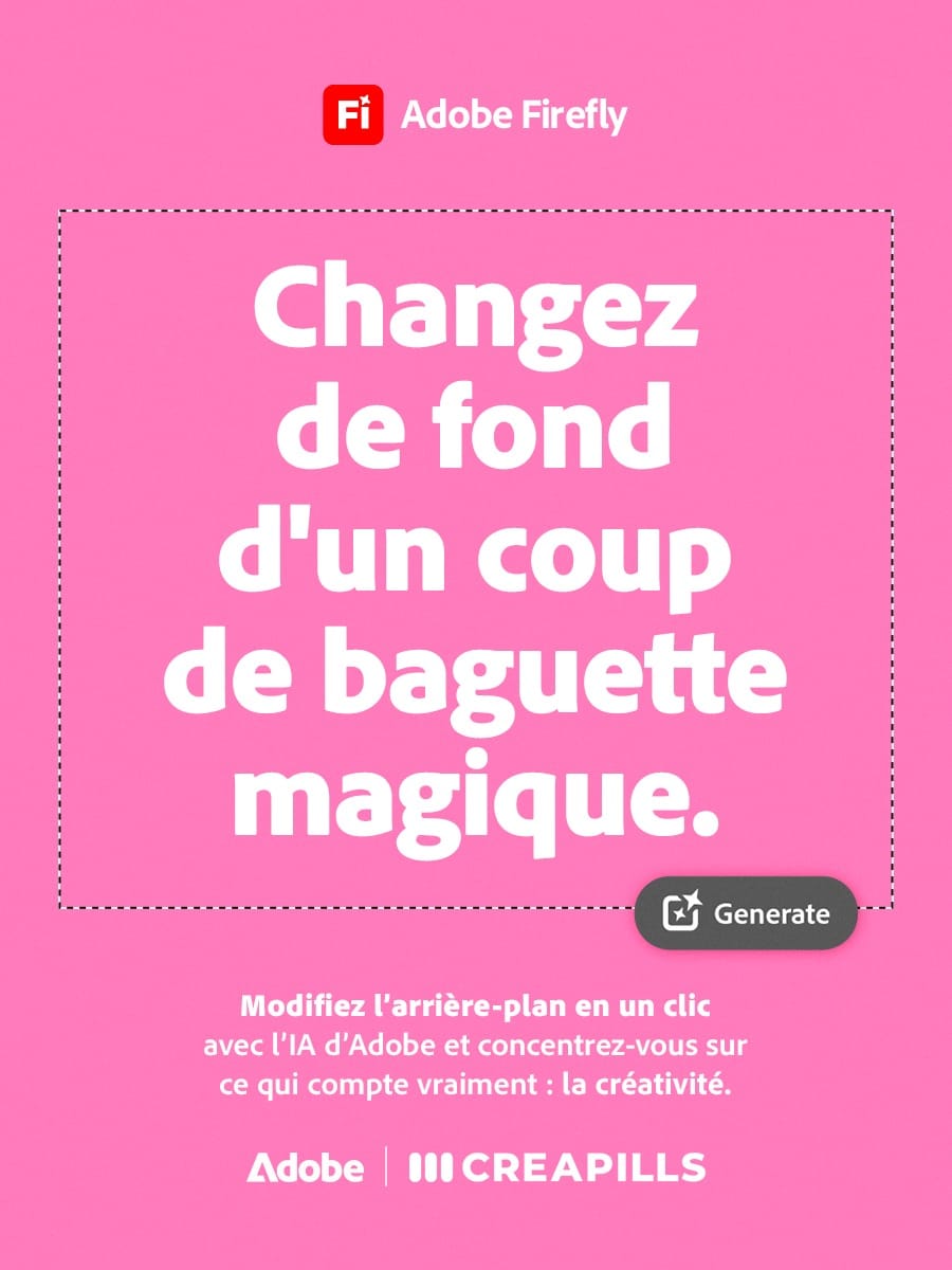 La campagne s’amuse ainsi à transformer ces gestes en punchlines, avec des jeux de mots construits autour des fonctionnalités les plus iconiques. On croise la baguette magique, le flou gaussien, le détourage, les calques, les retouches colorimétriques, comme autant de références partagées qui créent une connivence immédiate. Et derrière le clin d’œil, la promesse est limpide : Firefly n’est pas là pour faire « à la place », mais pour faire « avec », en accélérant ce qui ralentit, afin que le créatif puisse se concentrer sur ce qui compte vraiment, la direction, le choix, l’idée, la personnalité.