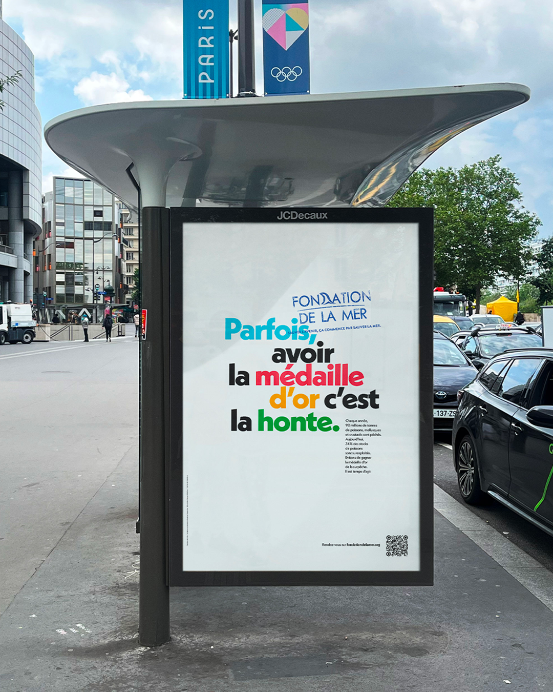 À quelques semaines des JO de Paris 2024, la Fondation de la Mer devait faire entendre l’urgence océanique dans un espace médiatique saturé. L’enjeu : sensibiliser à des données alarmantes, 8 millions de tonnes de plastique en mer par an, 34 % des stocks surexploités, niveau marin en hausse, sans se retrouver noyée dans le bruit ambiant.
