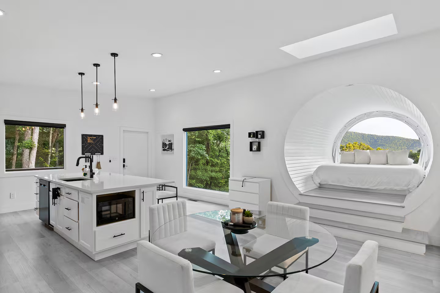 Située près d’Ellijay, cette cabane hors norme s’adresse autant aux amateurs de nature qu’aux passionnés de photographie. Entre immersion visuelle, design ludique et panorama à couper le souffle, le lieu transforme le séjour en véritable mise au point sur l’essentiel : ralentir, observer et profiter du moment.
