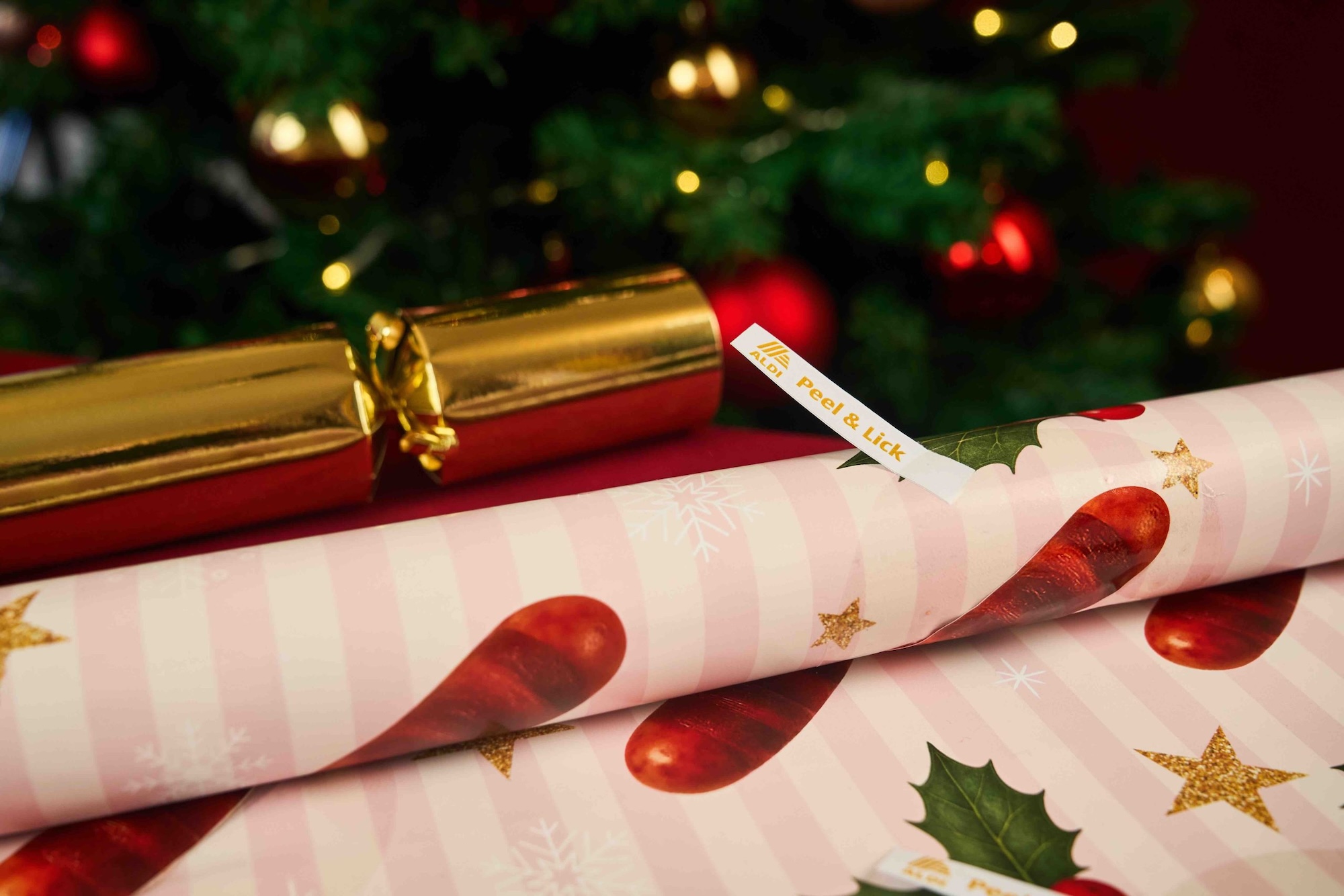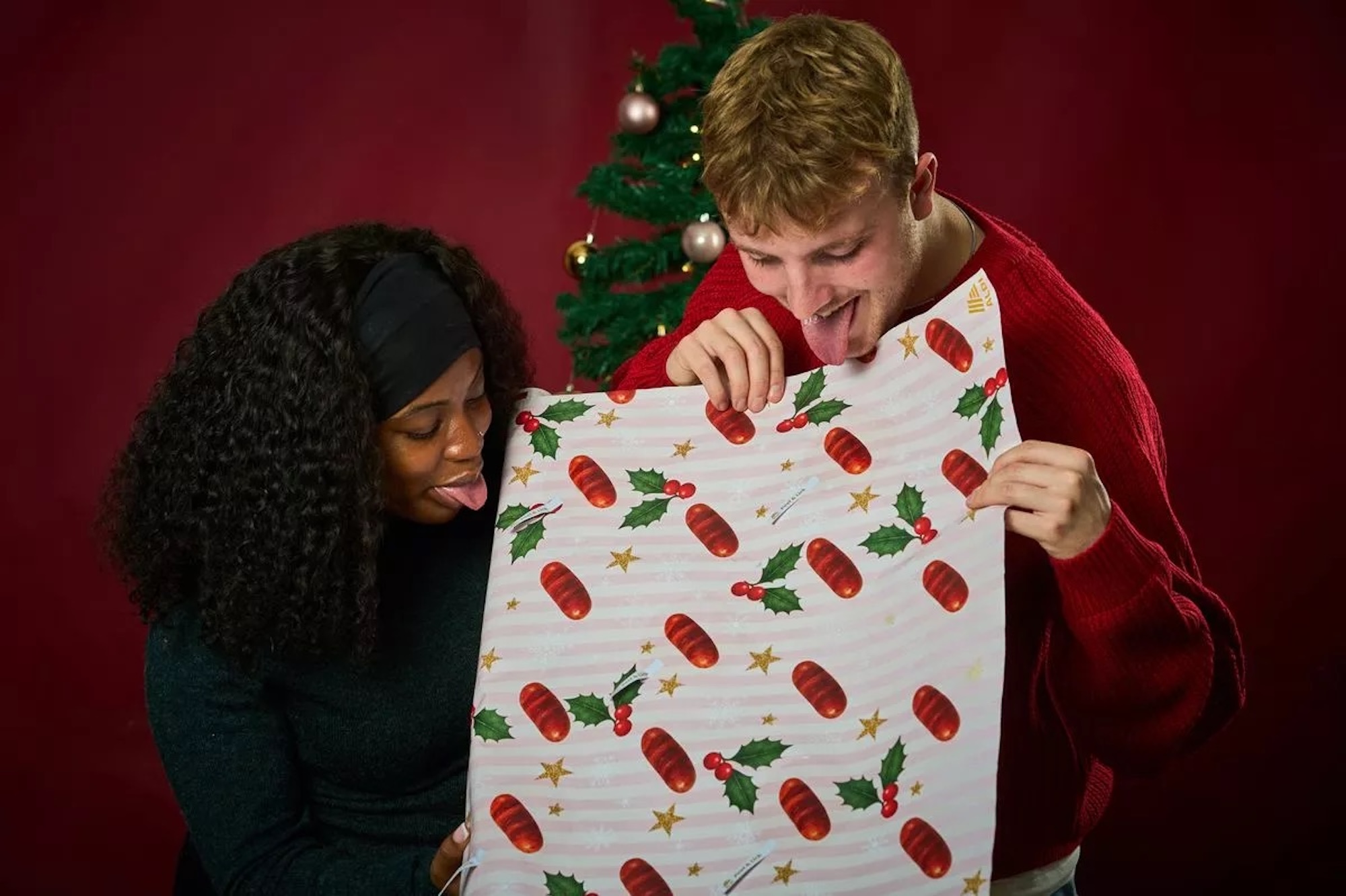 Aldi ne s’est pas contenté de créer un motif festif. Le géant du discount a mis au point un véritable papier comestible, parfumé et aromatisé pour reproduire le goût fumé et salé des pigs in blankets. Sous les rayures pastel rose, les motifs holly et les flocons de neige se cachent des stickers à décoller pour révéler des zones “lickables”. Il suffit de tirer la languette pour goûter instantanément au célèbre accompagnement de Noël.