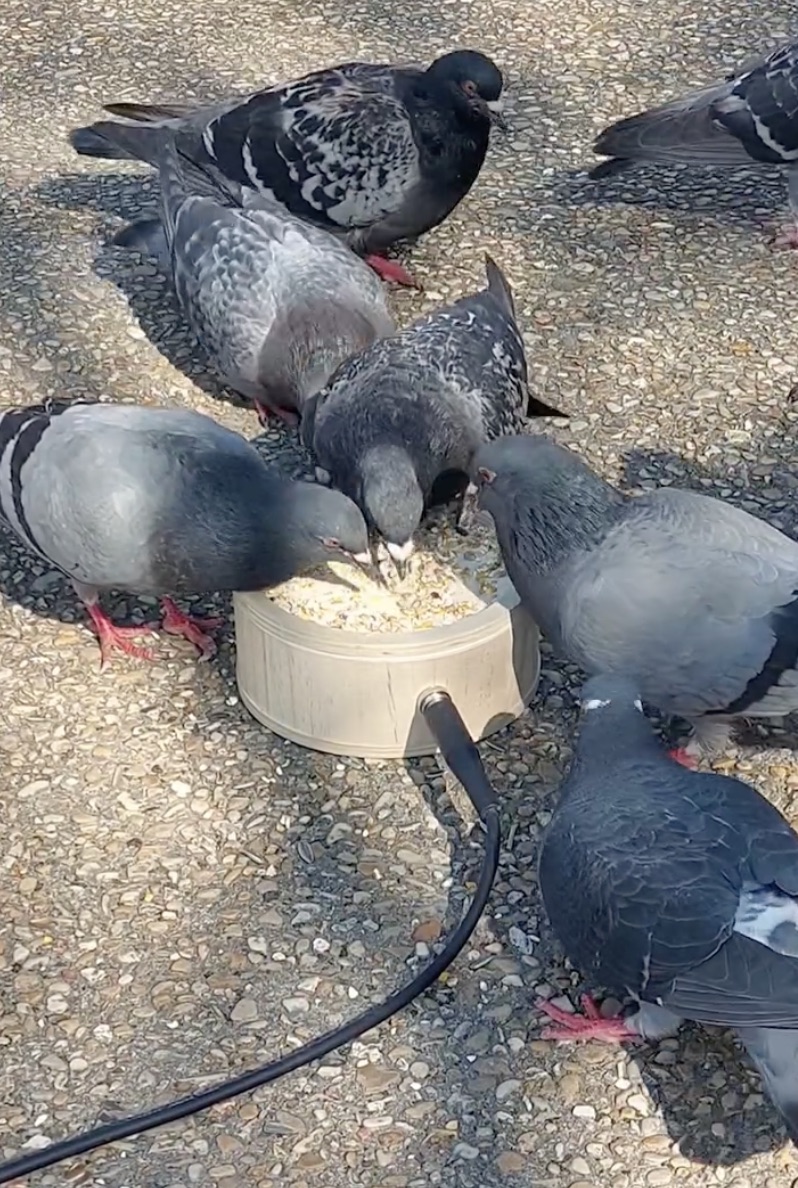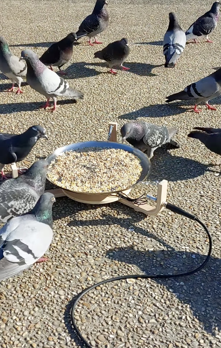 Attirés par la nourriture, les pigeons se posent, picorent, se déplacent. Chaque mouvement, chaque impact, chaque frottement est capté et transformé en signal sonore. Peu à peu, un rythme se crée. Une matière sonore imprévisible, presque hypnotique, qui évoque davantage une production électronique qu’un simple bruit d’oiseaux.