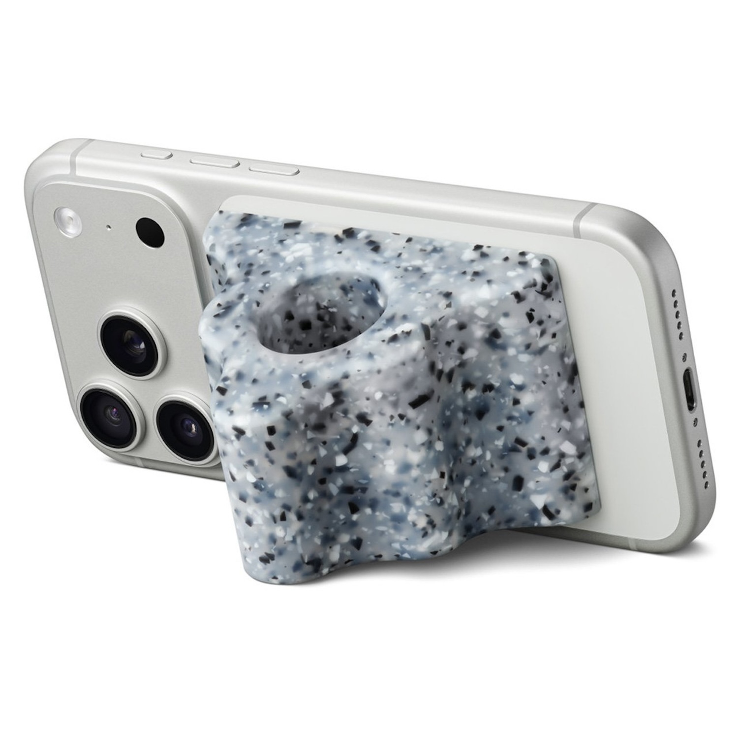 L’accessoire s’attache et se détache par MagSafe en une seconde, sans nécessiter de pression forte ni de gestes complexes. Il peut ensuite se déployer en support pour visionner une vidéo ou passer un appel, offrant une solution simple à des besoins réels : moins de crispation, moins de tension, et plus d’autonomie.