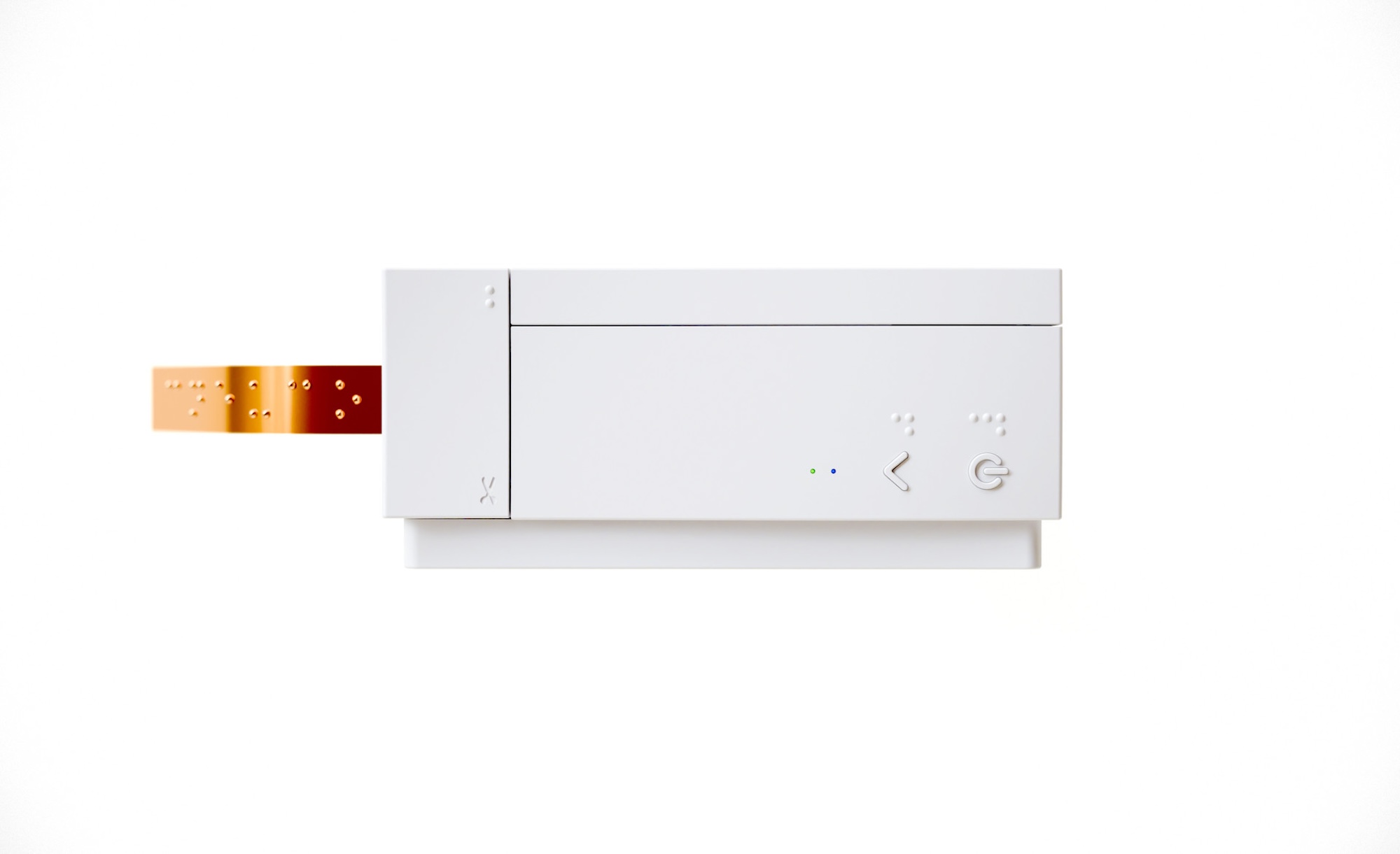 L’imprimante elle-même a été conçue pour fonctionner sans repères visuels. Sa forme compacte, ses textures tactiles et son fonctionnement simplifié permettent une prise en main autonome. Le mécanisme d’impression repose sur un système de pression propriétaire qui produit des points en relief d’une hauteur constante de 0,6 mm, conforme aux standards internationaux du braille.