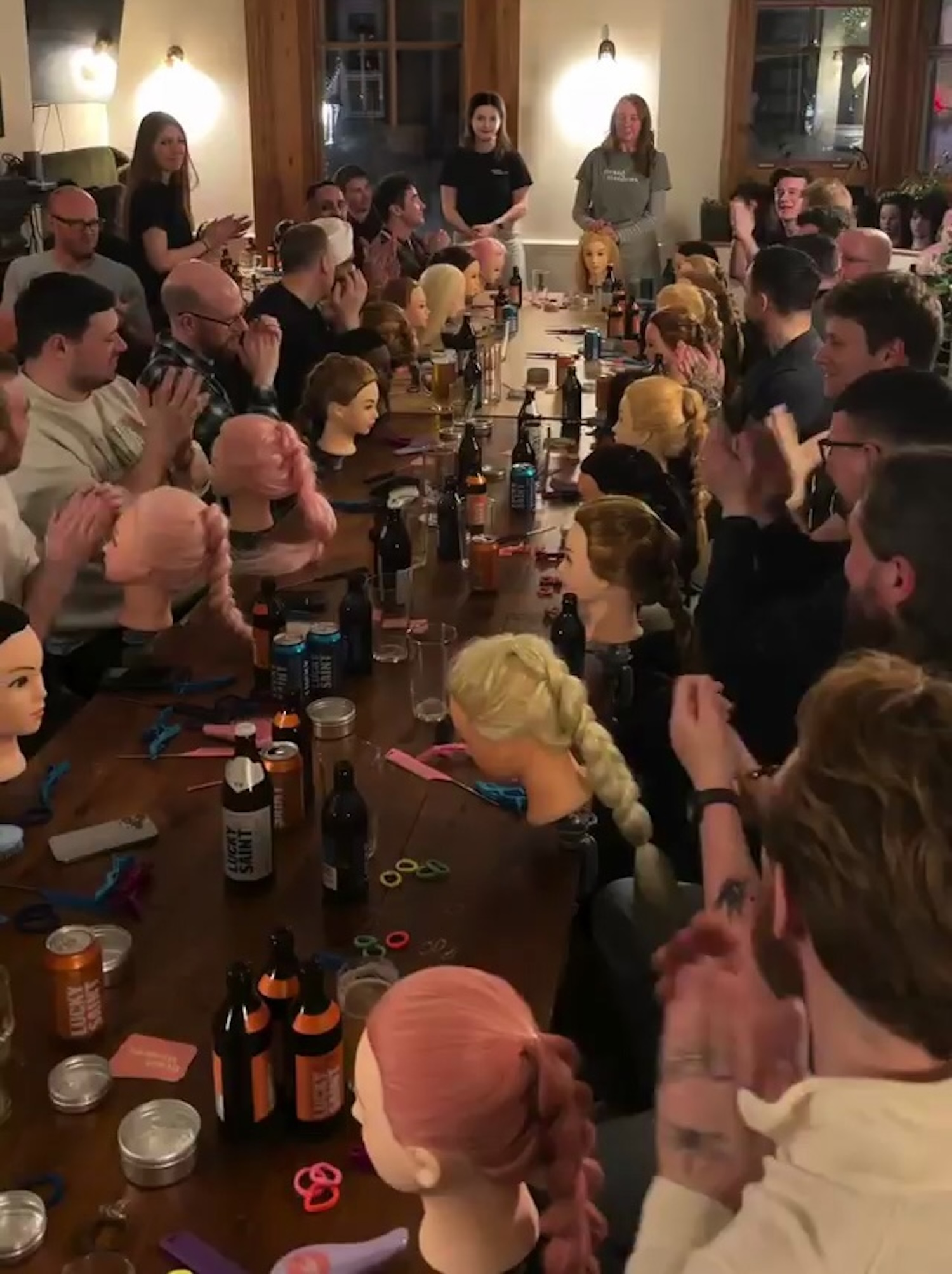 L’événement s’est déroulé au Lucky Saint Pub à Londres, où une trentaine de papas se sont réunis pour un atelier un peu particulier. Encadrés par les expertes de Braid Maidens, ils ont appris les bases de la coiffure, du simple ponytail aux tresses plus élaborées.