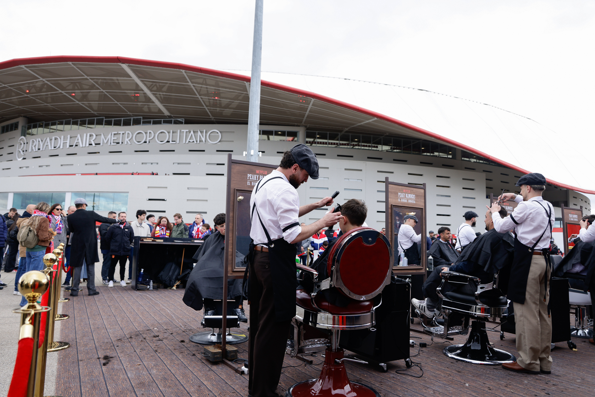 - Le stade Metropolitano s’est plongé dans le Birmingham des années 1930 avec fan zone thématisée, barbershop Peaky Blinders, véhicules d’époque et loges VIP recréant le pub The Garrison.