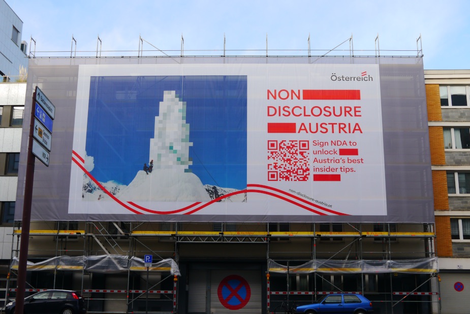 Imaginée par Austria Tourism avec l’agence Wien Nord Serviceplan, la campagne Non-Disclosure Austria transforme un problème global en idée créative. Au lieu de montrer ses paysages les plus spectaculaires, l’Autriche choisit de les cacher. Littéralement.