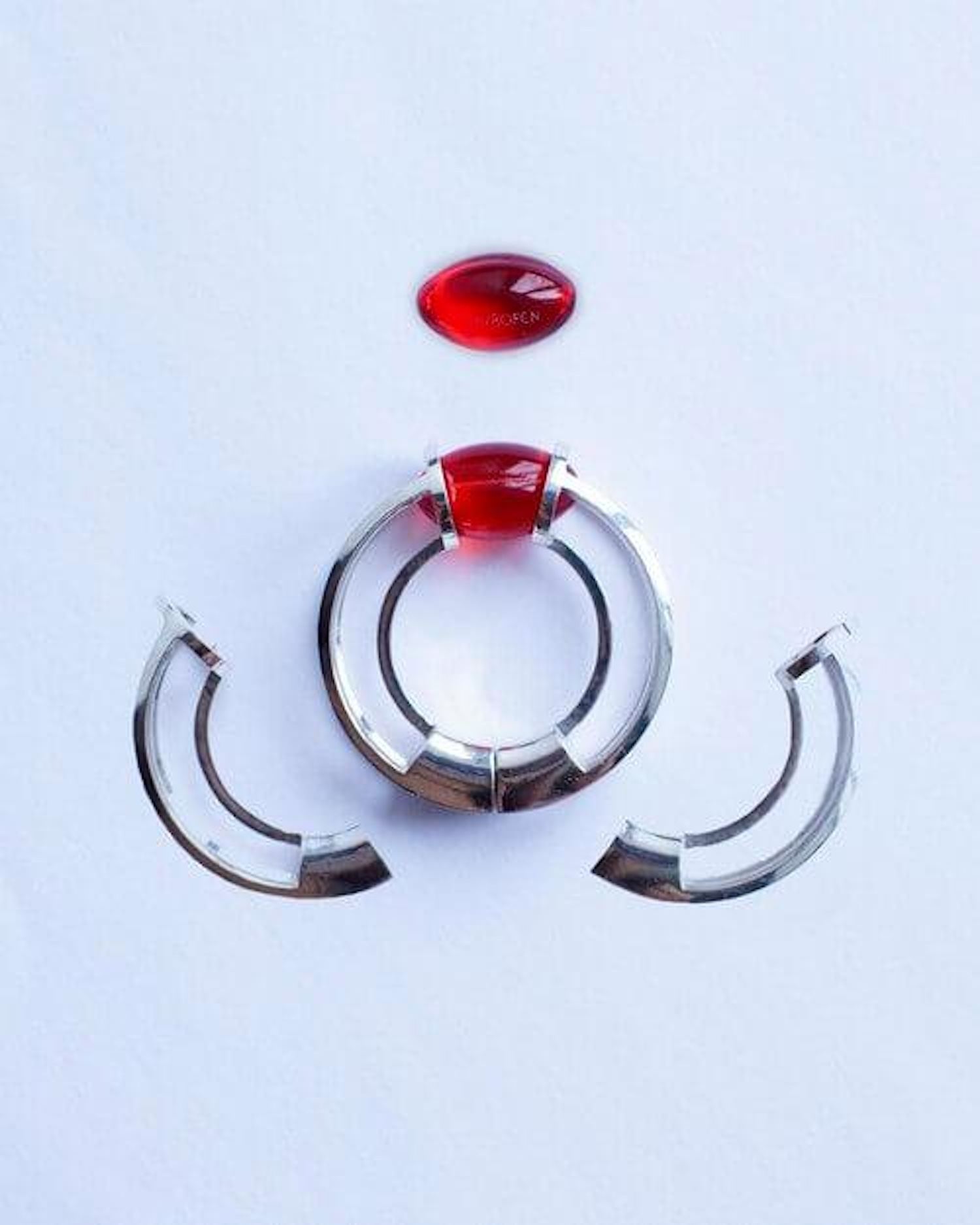 Depuis ses débuts, Daria Khoreva utilise le bijou comme un langage social et émotionnel. Dans cette œuvre, l’argent, symbole de pureté, se mêle à la pharmacologie, évoquant la médicalisation du corps féminin. La capsule devient métaphore : celle de l’endurance contrainte, mais aussi de la résilience. L’artiste invite à ouvrir littéralement la bague, à dévoiler ce que l’on cache habituellement : un geste intime, presque subversif.