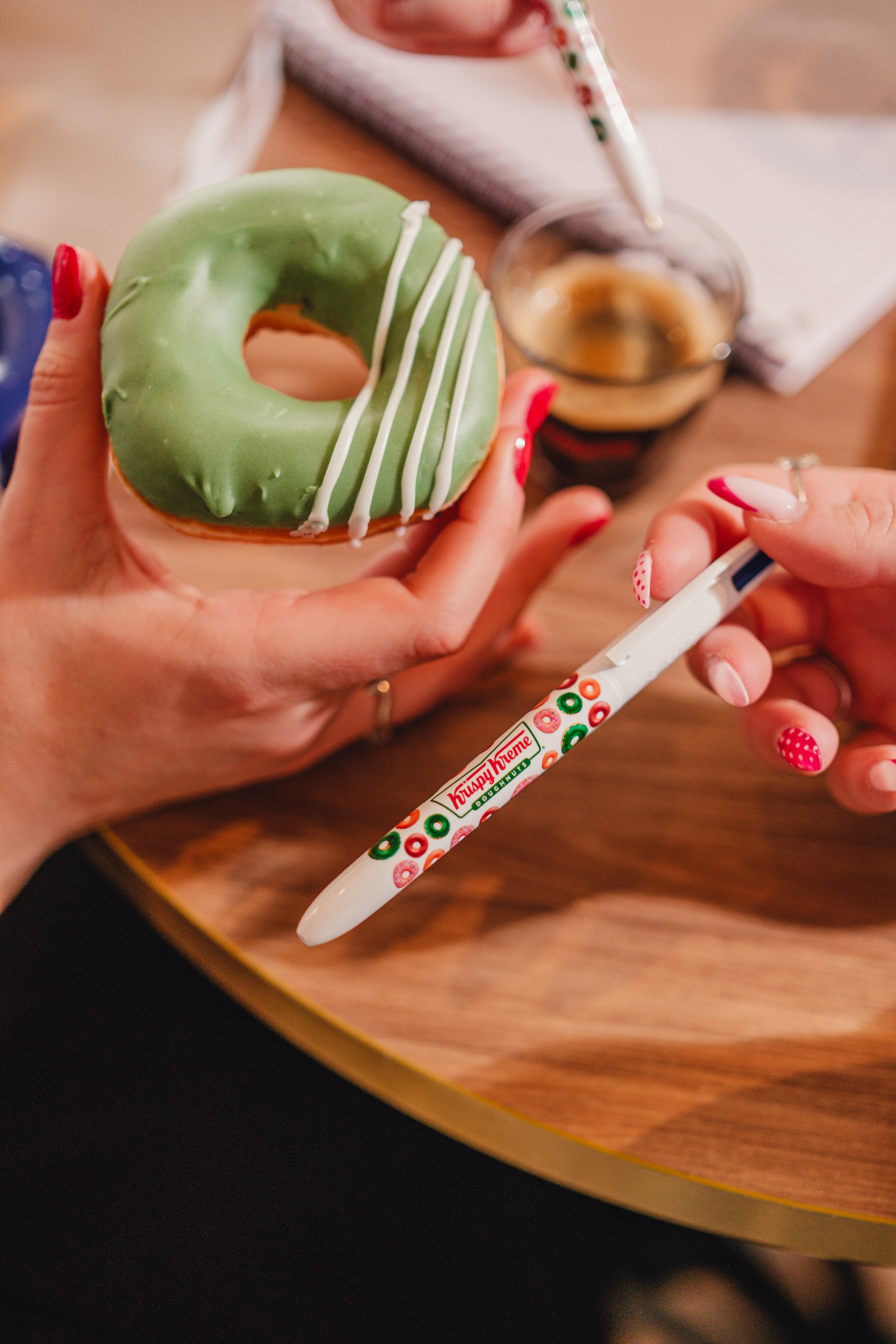 Pour prolonger l’expérience, un stylo BIC 4 Couleurs aux couleurs de Krispy Kreme est offert pour l’achat de la boîte. Un objet collector qui s’inscrit dans la continuité de cette collaboration.