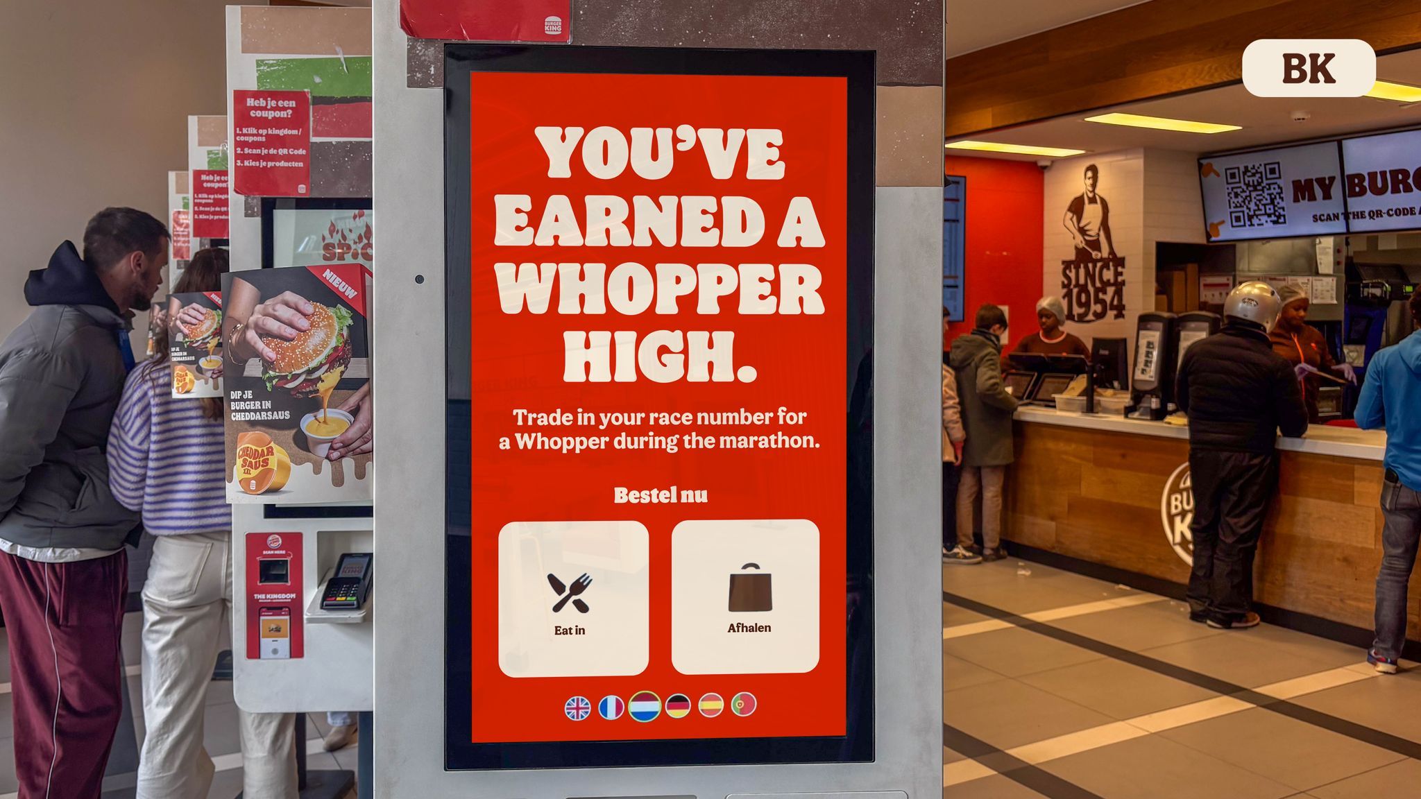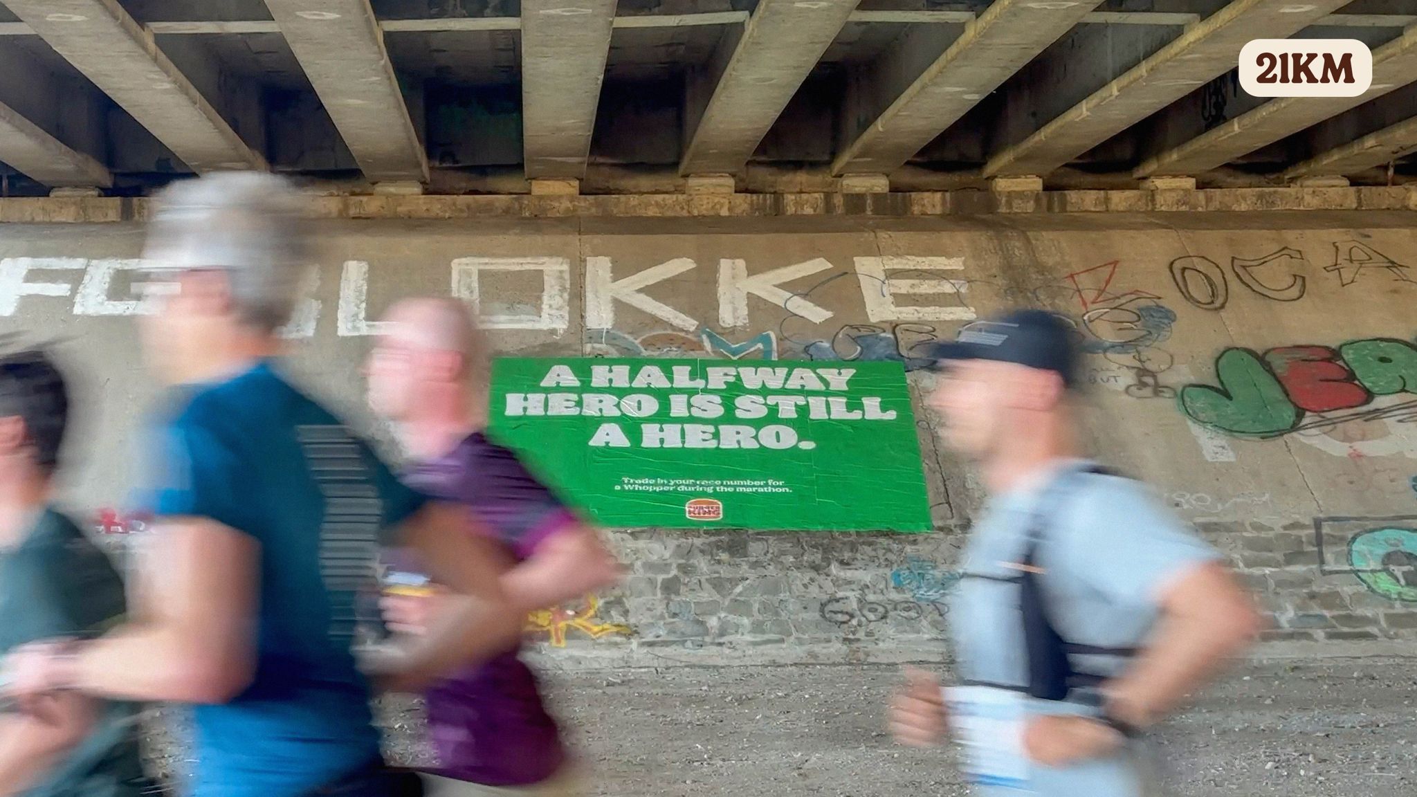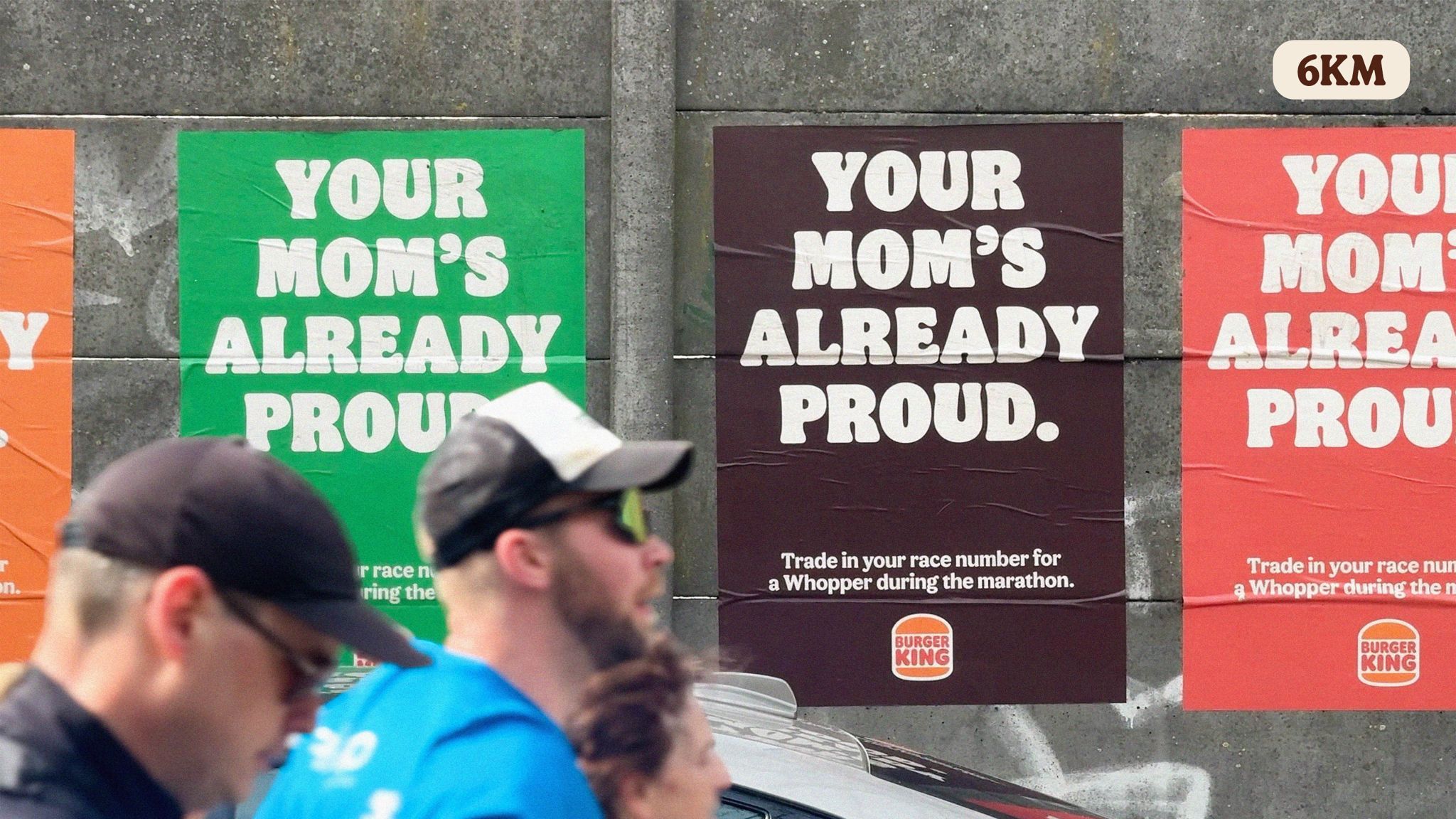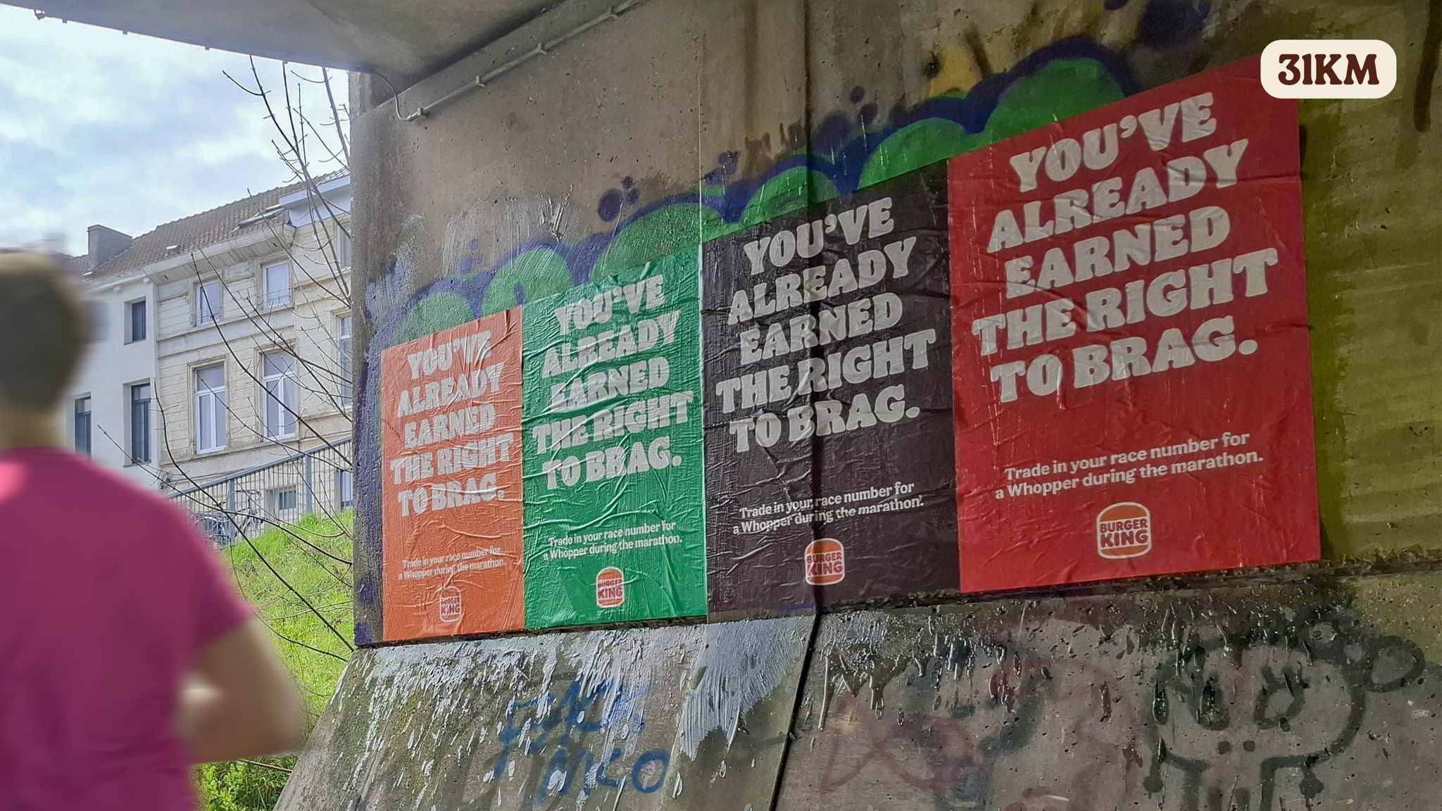 L’idée ne s’arrête pas à l’affichage. Burger King propose aux coureurs d’échanger leur dossard contre un Whopper pendant l’événement. Un geste symbolique qui transforme l’arrêt en récompense.
