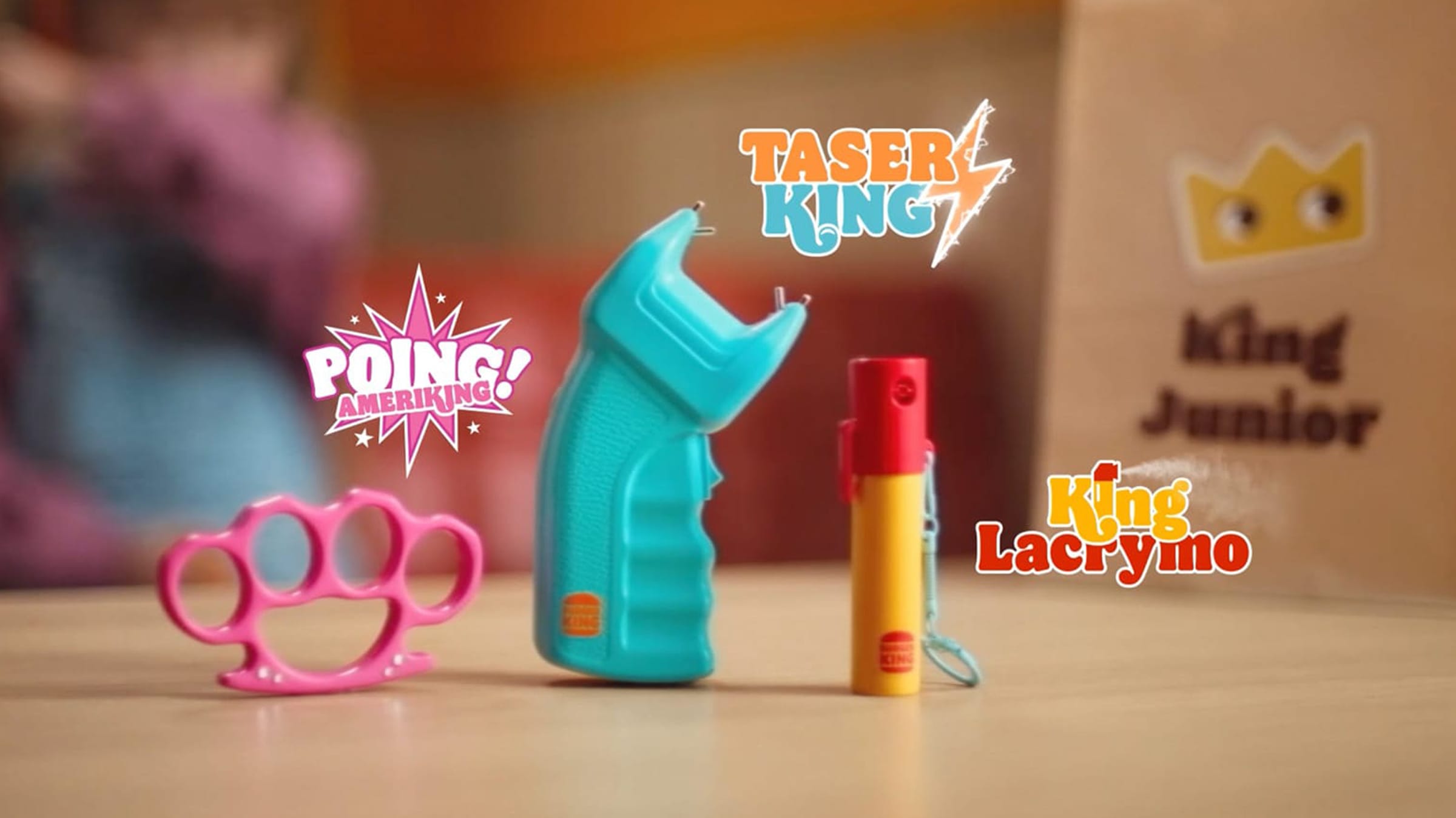 Dans le film, un enfant déballe son menu avec l’enthousiasme qu’on lui connaît. Nuggets, frites, boisson… puis soudain, une bombe lacrymogène, un taser et un poing américain. L’image, brutale et absurde, met en lumière une réalité douloureuse : pour trop d’enfants, la violence n’a rien d’un jeu.