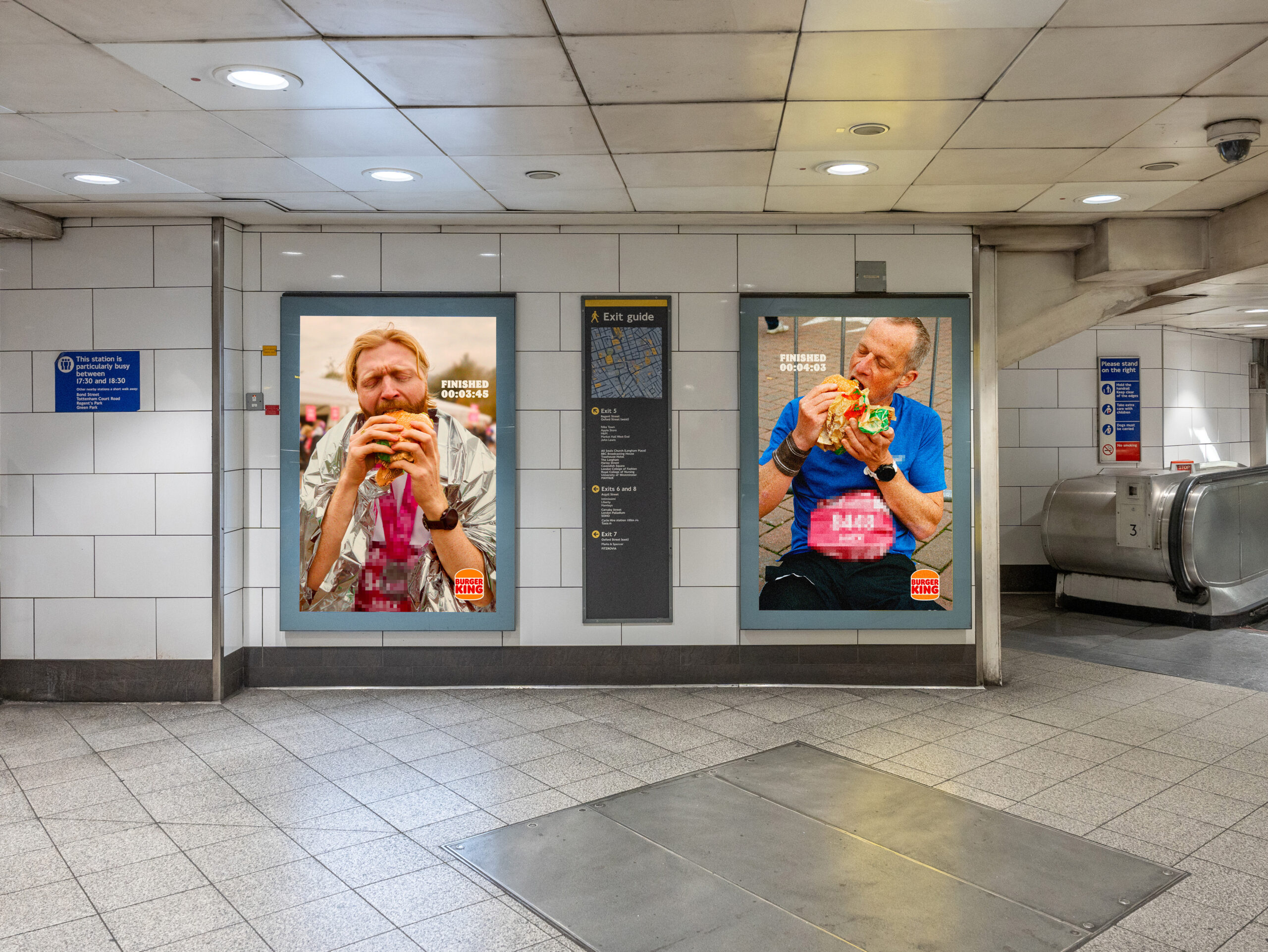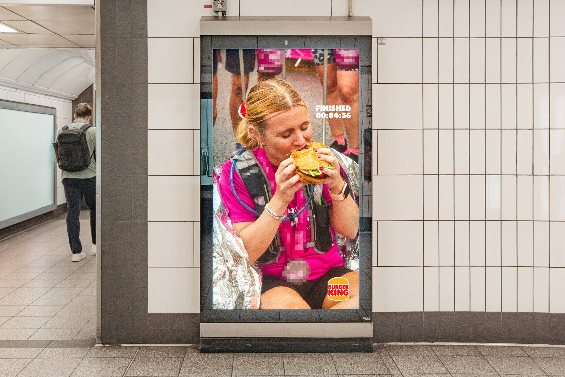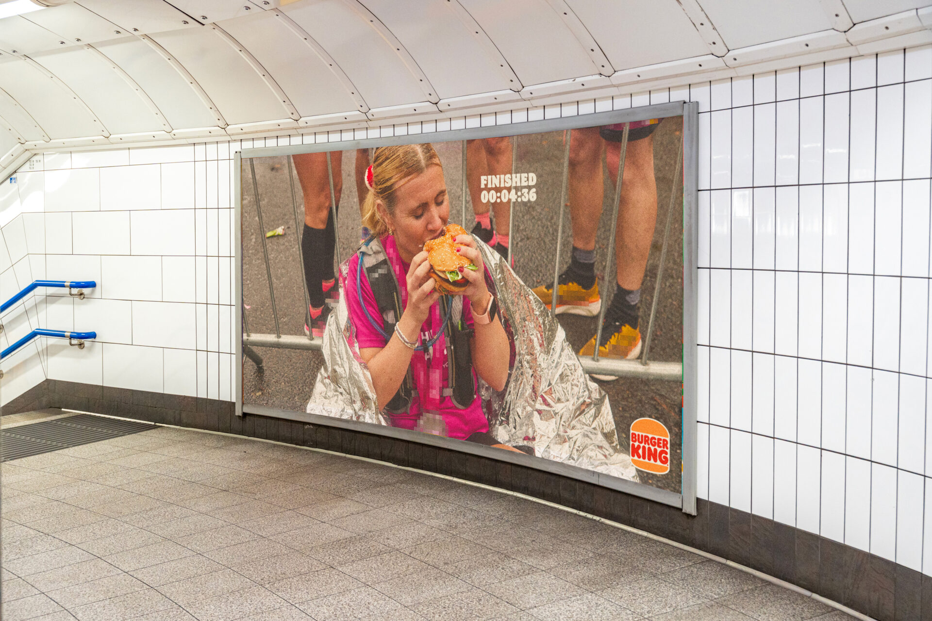 Le dispositif ne s’arrête pas à l’affichage. À l’occasion du marathon de Londres, Burger King passe à l’action avec une activation concrète. Les coureurs peuvent récupérer un Whopper gratuit en présentant leur médaille dans certains restaurants.