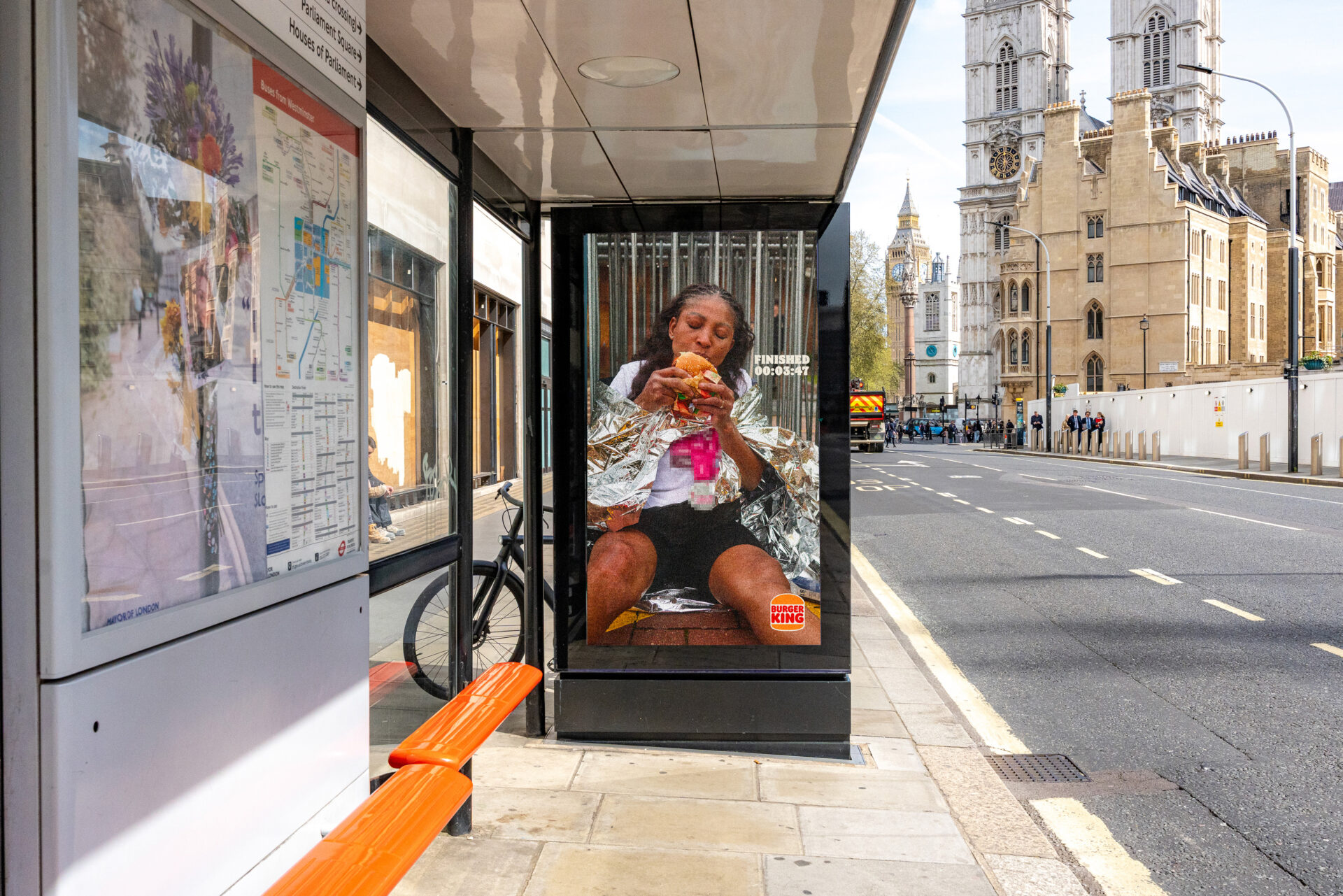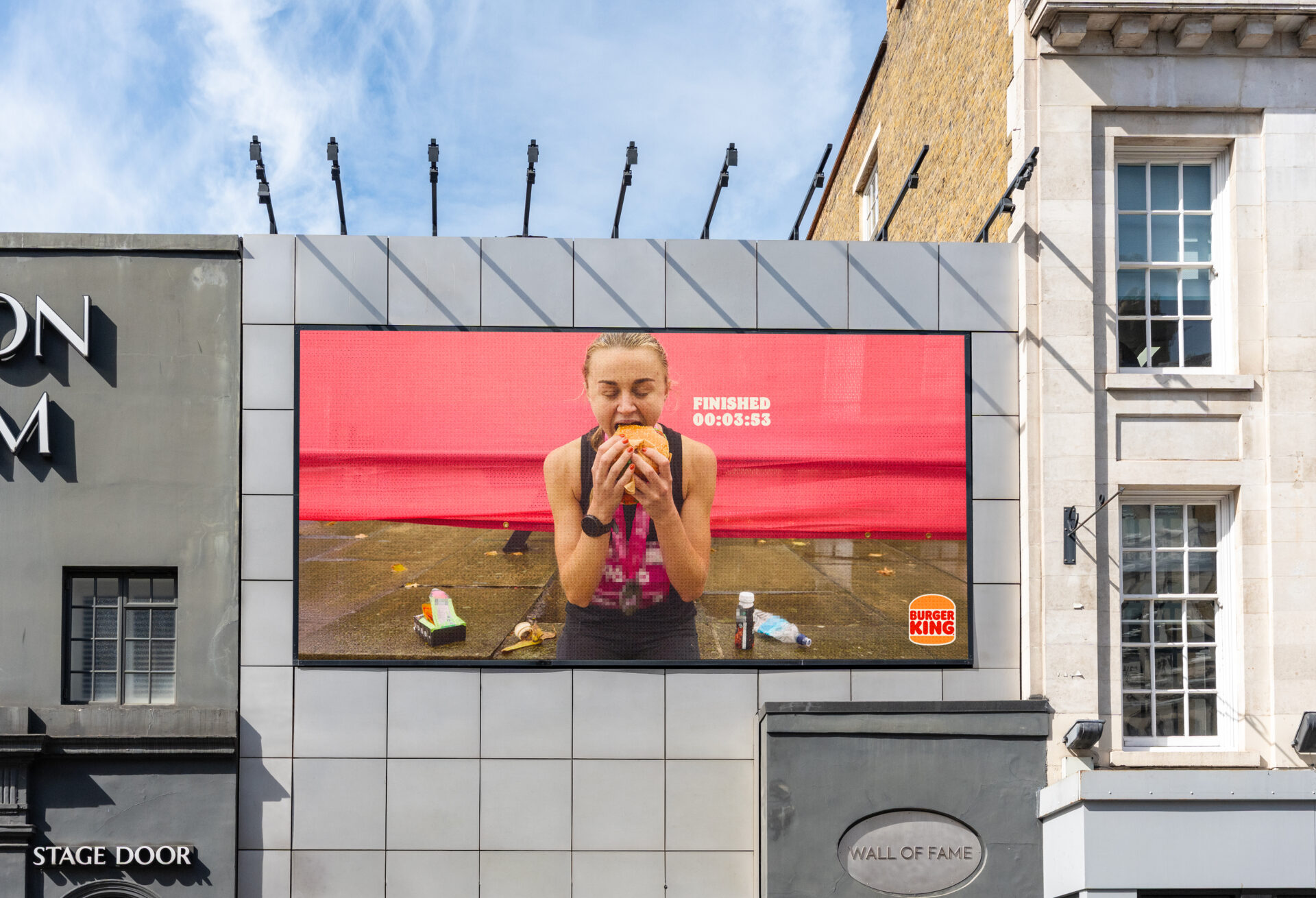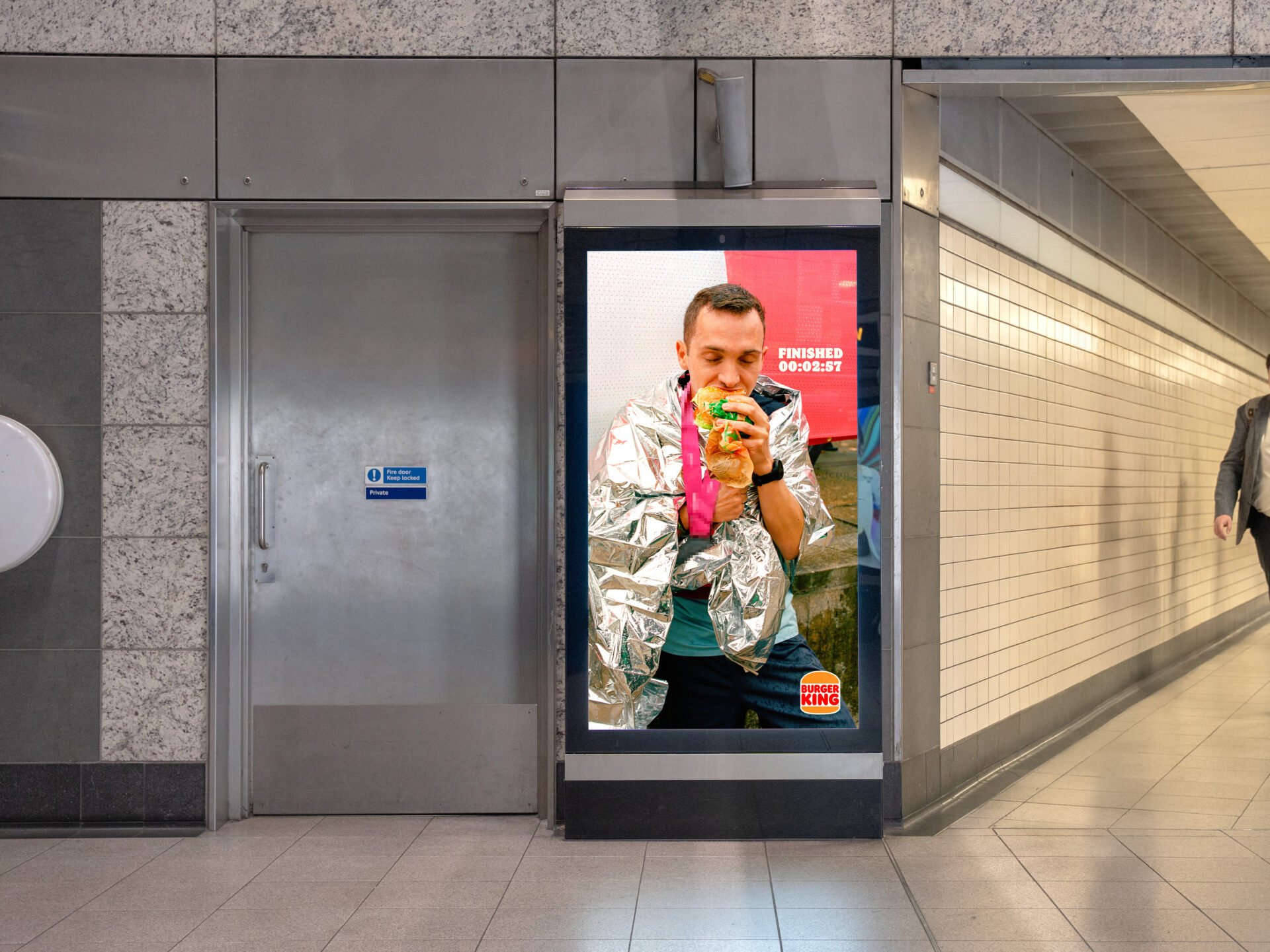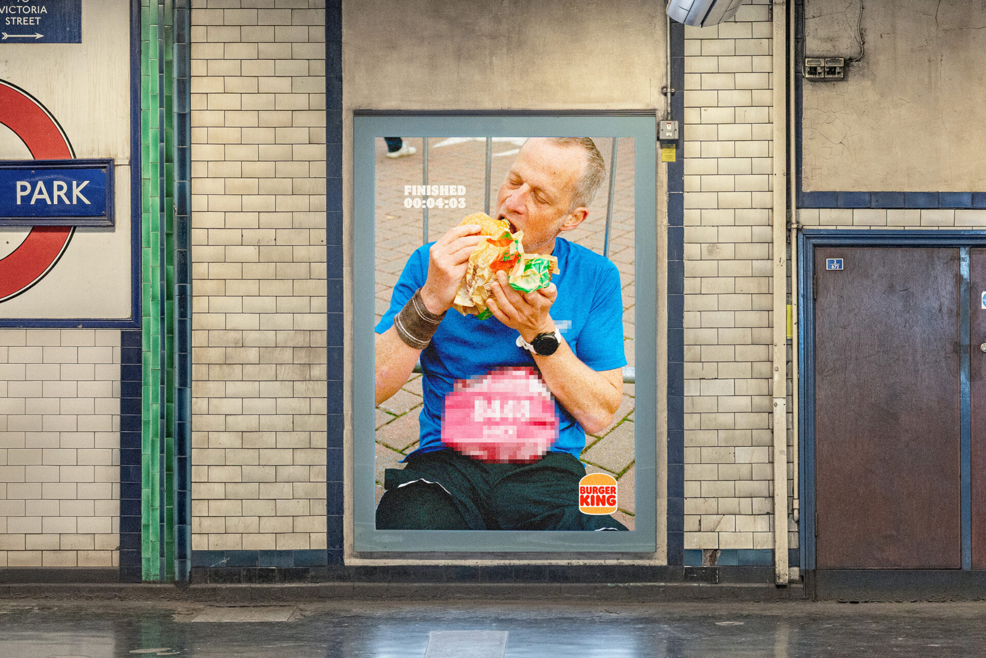 Le dispositif ne s’arrête pas à l’affichage. À l’occasion du marathon de Londres, Burger King passe à l’action avec une activation concrète. Les coureurs peuvent récupérer un Whopper gratuit en présentant leur médaille dans certains restaurants.