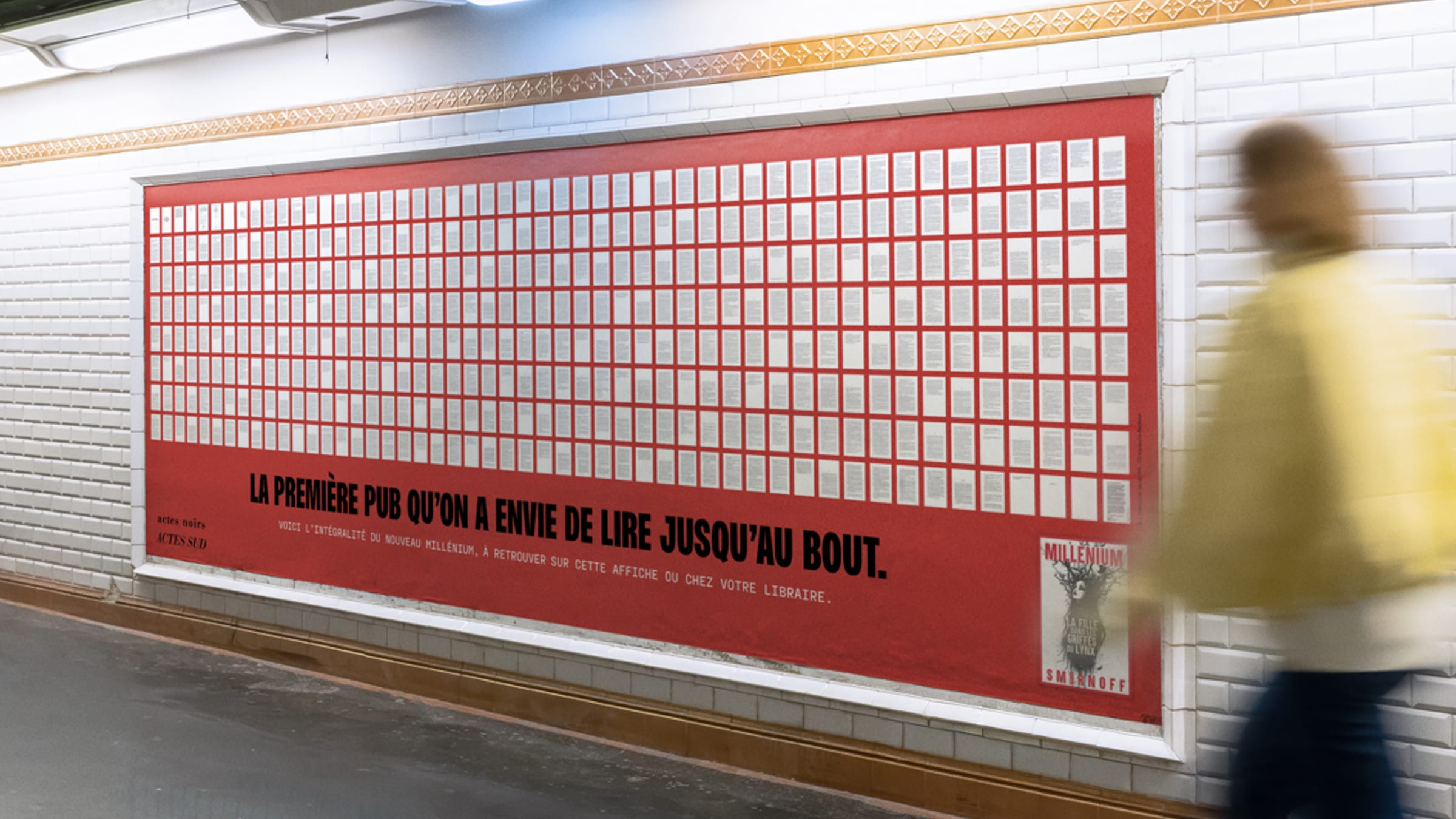 Actes Sud dévoile une campagne inédite : les 397 pages du nouveau Millénium affichées dans le métro parisien, offrant aux voyageurs une avant-première totale.