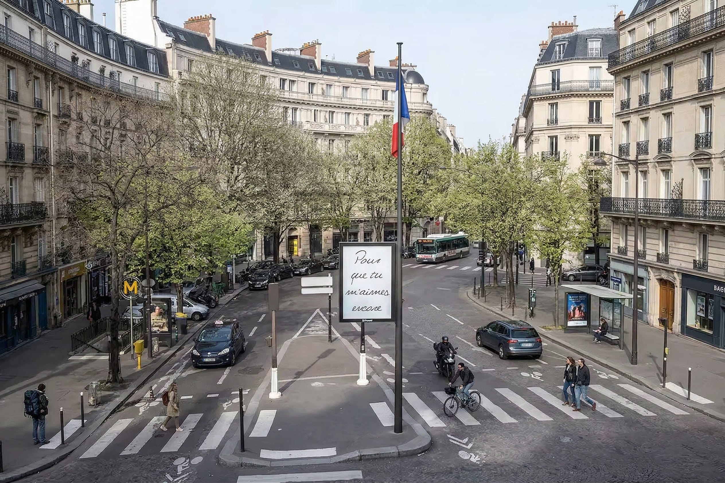 Depuis quelques jours, d’étranges affiches ont envahi les rues de Paris. Minimalistes, noir sur blanc, elles reprennent simplement des titres cultes comme “Pour que tu m’aimes encore” ou “My Heart Will Go On”. Un dispositif discret… mais suffisant pour enflammer les fans.