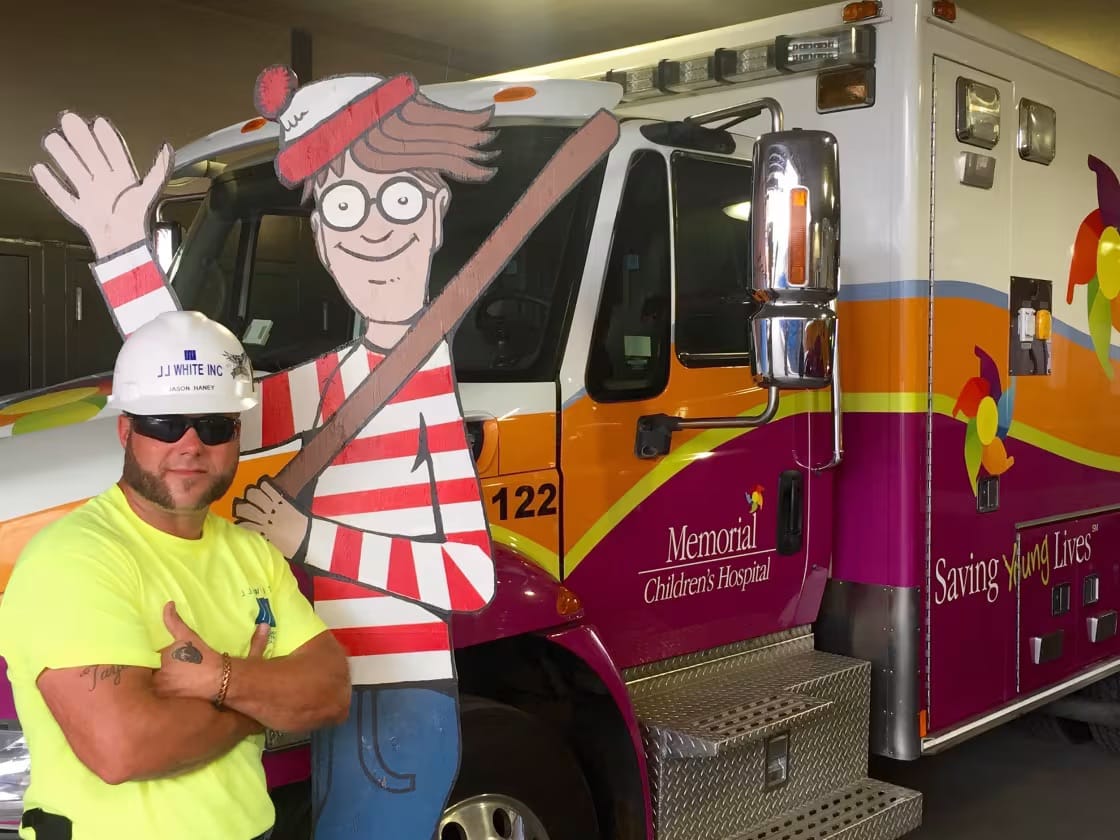 Aujourd’hui, on vous propose de redécouvrir une idée touchante de 2016. Sur un chantier situé juste en face de l’hôpital pour enfants de l’Indiana, le chef de chantier Jason Haney a trouvé une façon simple mais brillante d’apporter un peu de joie aux jeunes patients : il a fabriqué un immense Charlie de 2,5 mètres, le héros à bonnet rouge et blanc. Visible depuis les fenêtres du service pédiatrique, le personnage change régulièrement de place. Et chaque fois que les enfants le trouvent, Jason le déplace discrètement ailleurs. Une idée toute simple, née sur un chantier, qui continue d’émouvoir Internet presque dix ans plus tard.