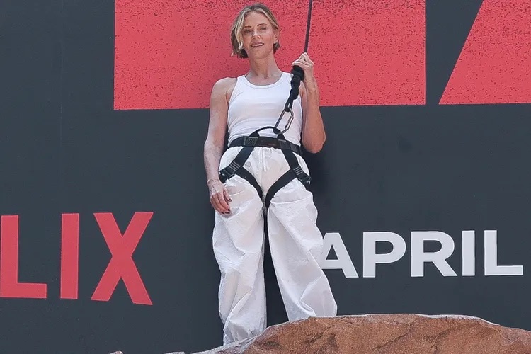 Ce choix créatif n’est pas anodin. Dans Apex, Charlize Theron incarne une grimpeuse experte confrontée à une situation extrême dans la nature australienne.