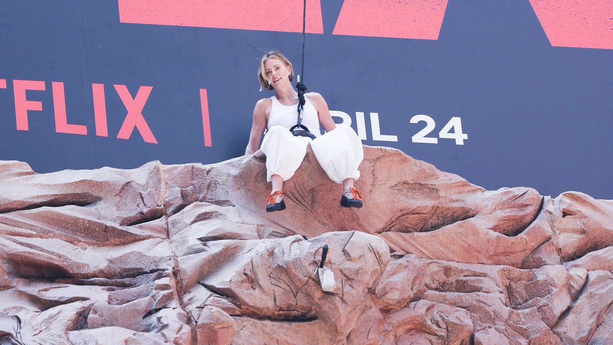 Charlize Theron rock-climbed a billboard in Times Square just to tell you that APEX is NOW ON NETFLIX. pic.twitter.com/1TcOiVkP3t