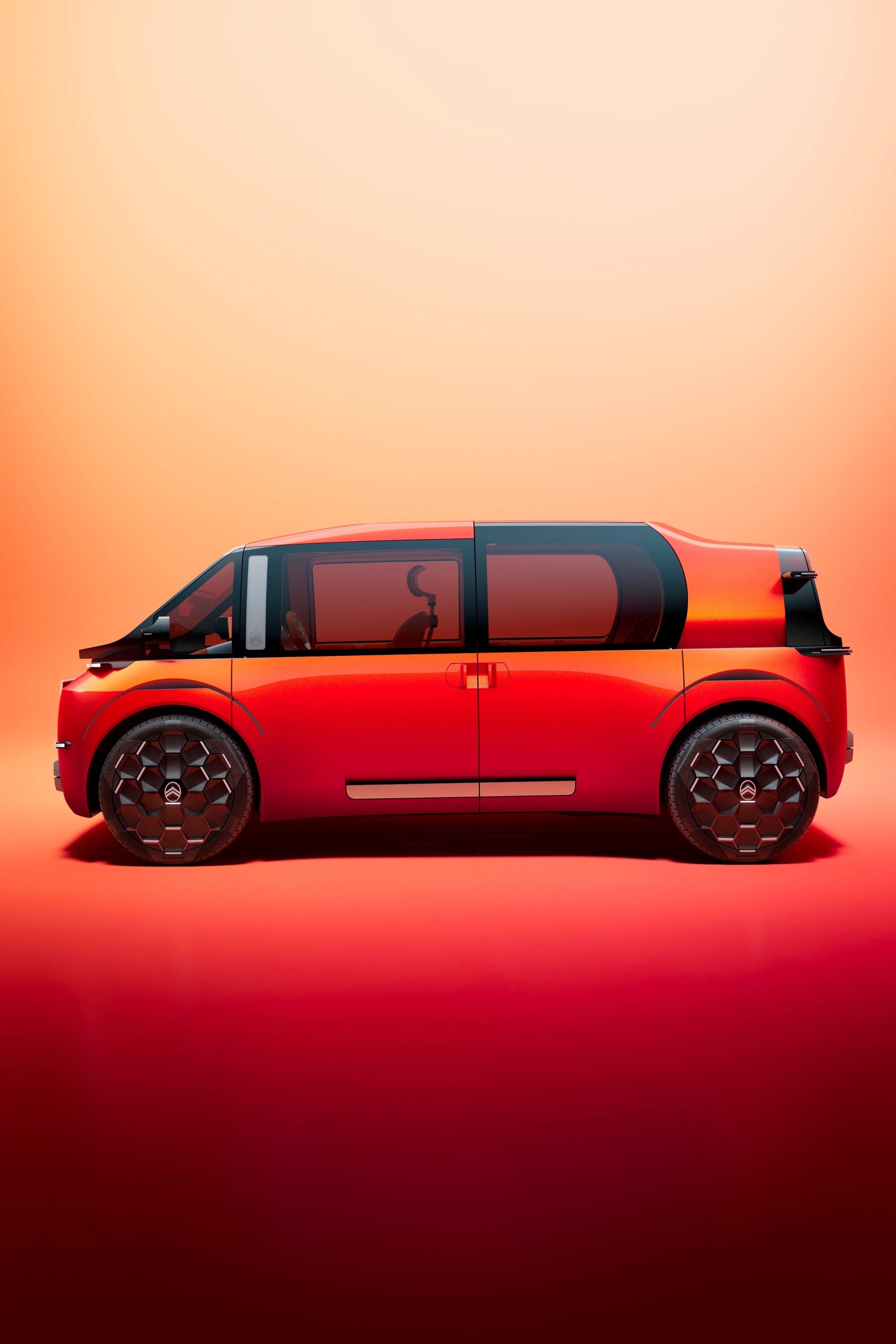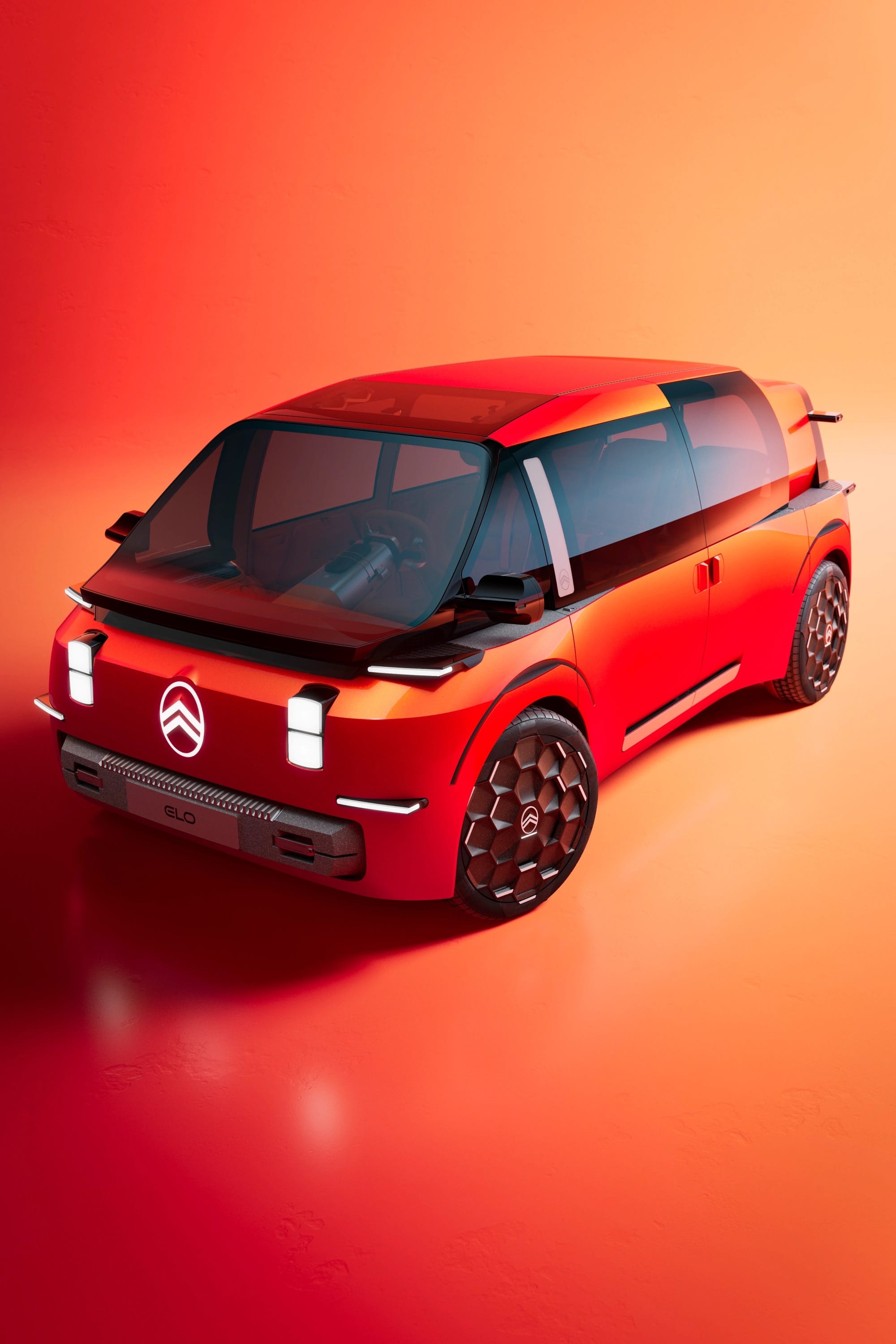 Avec seulement 4,10 mètres de long, soit à peine plus qu’une citadine, ELO parvient à accueillir jusqu’à six passagers. Sa silhouette cubique et largement vitrée privilégie la lumière et la sensation d’espace, rappelant l’âge d’or des monospaces tout en adoptant une esthétique résolument contemporaine. Le poste de conduite central, inspiré de configurations rares dans l’automobile, libère l’habitacle de toute planche de bord traditionnelle et renforce la convivialité à bord.