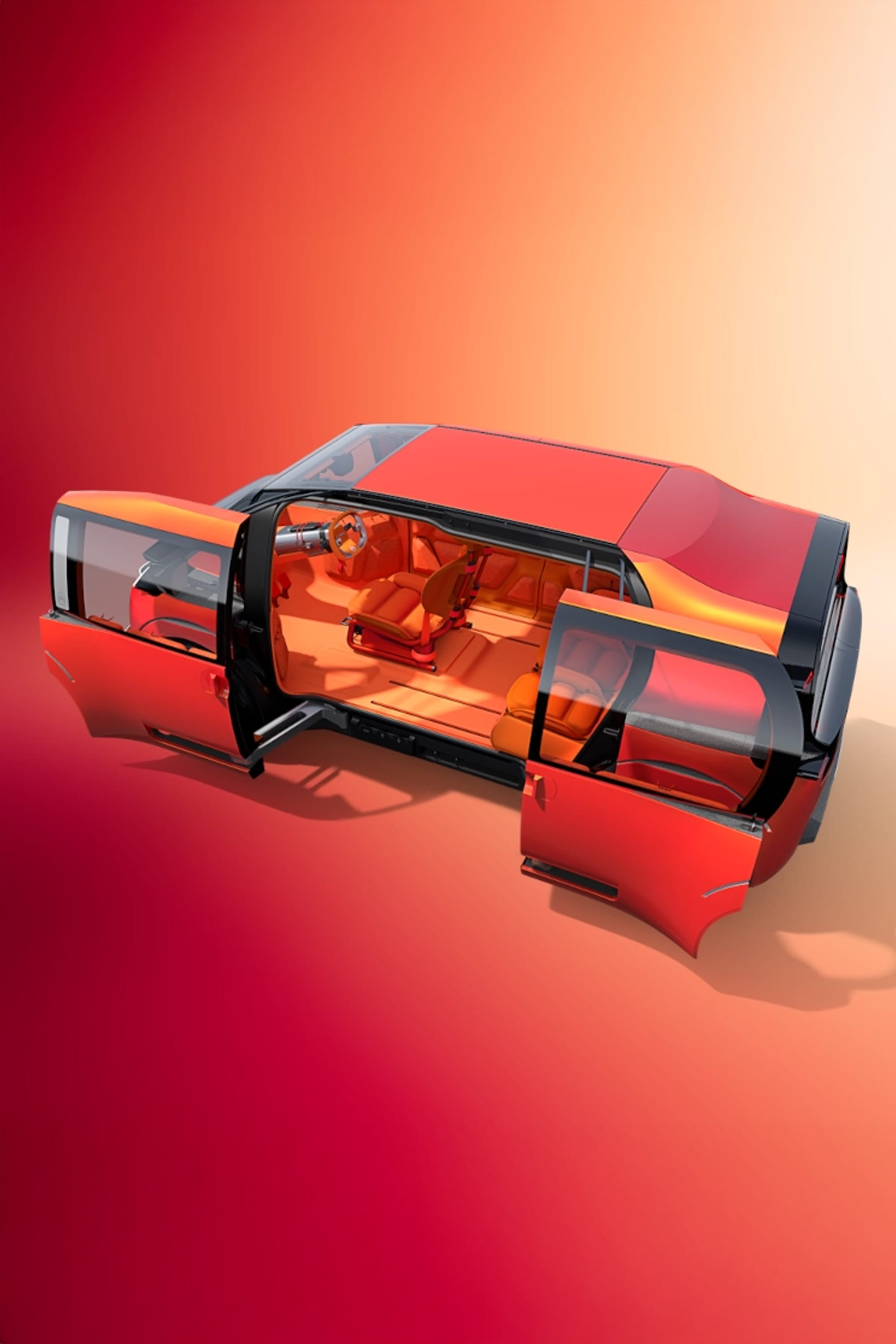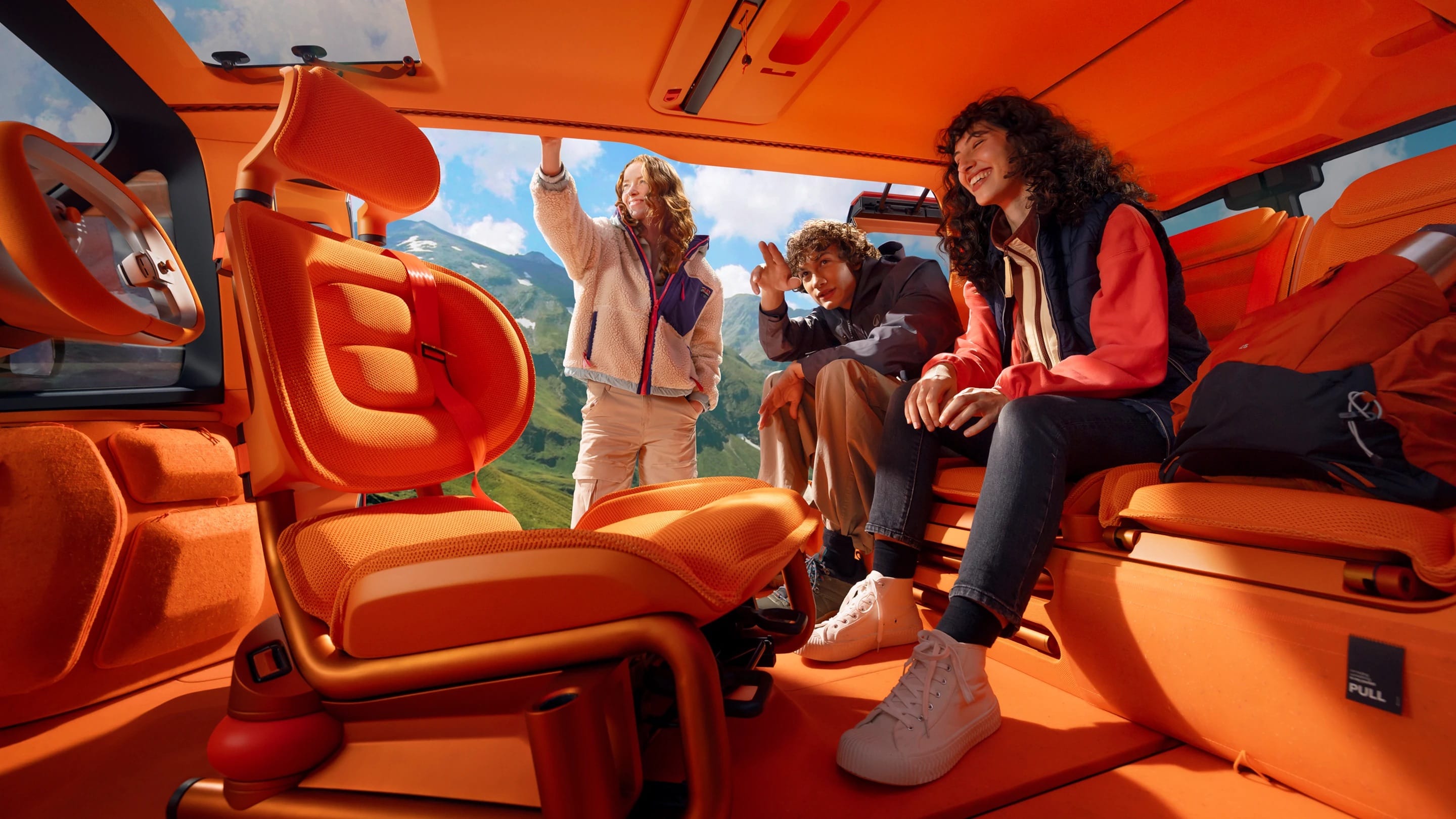Les quatre portes antagonistes, sans montant central, facilitent l’accès et transforment l’entrée dans le véhicule en véritable expérience. Le plancher plat, la hauteur sous plafond généreuse et la visibilité panoramique contribuent à cette impression de volume continu, pensée pour être vécue autant à l’arrêt qu’en mouvement.