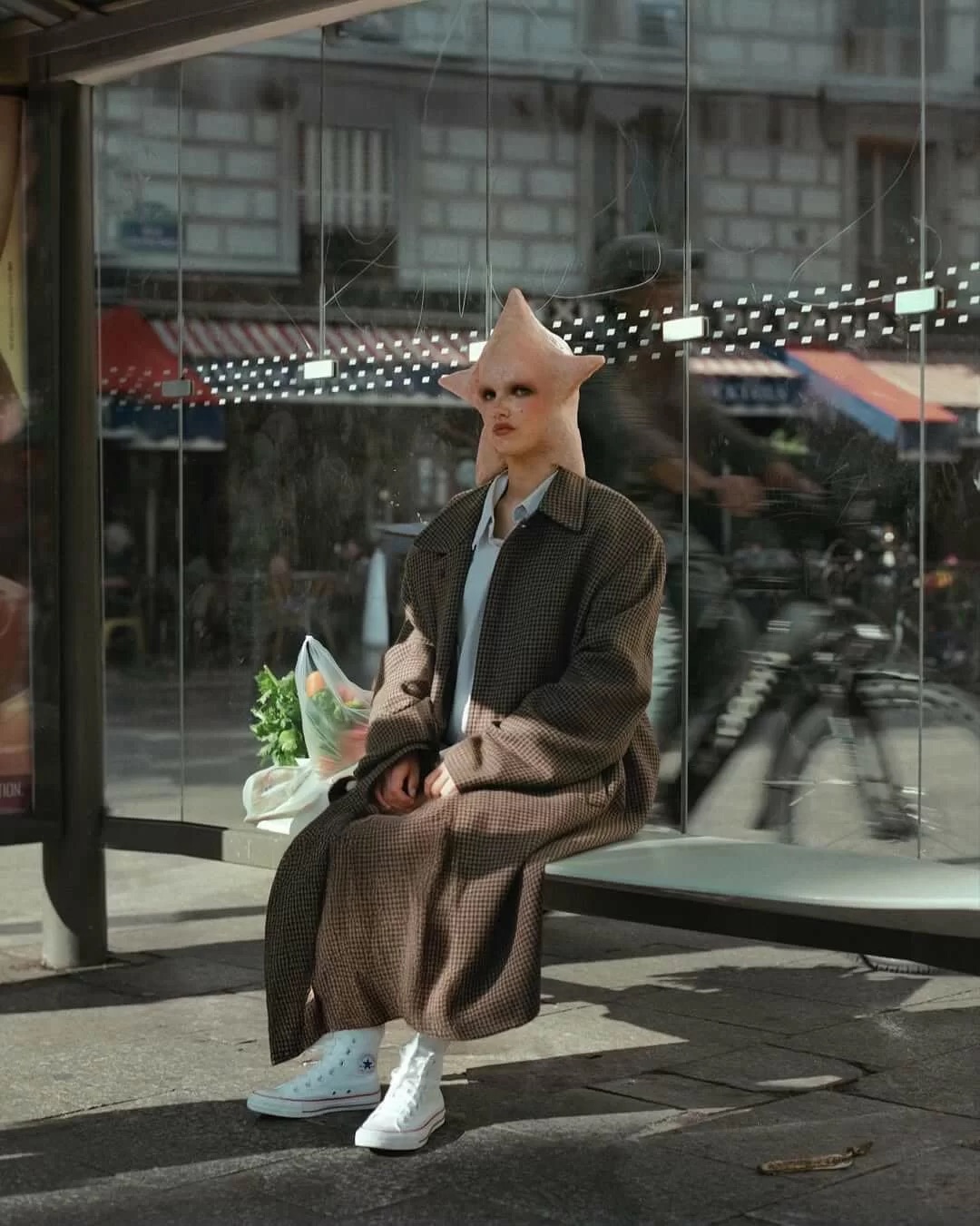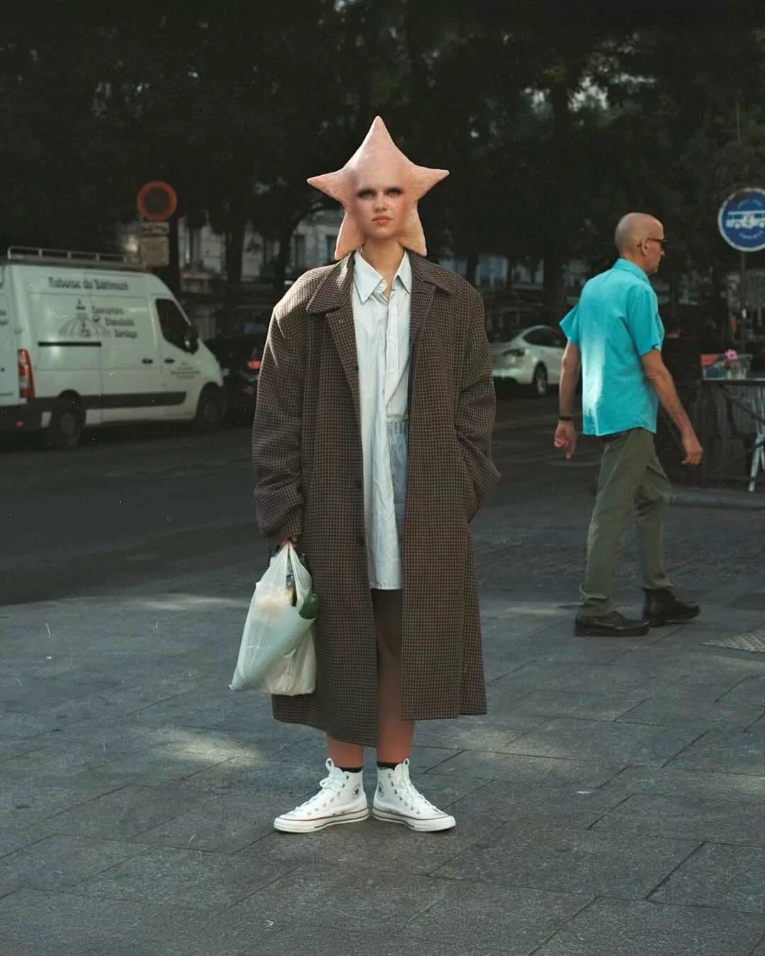 Pour cette prise de parole radicale, la marque s’associe à l’artiste et photographe amstellodamoise Loïs Cohen, connue pour ses personnages atypiques et son goût pour les esthétiques qui dérangent juste ce qu’il faut. Ensemble, ils imaginent une figure dont la tête prend la forme de l’étoile All Star, symbole historique de Converse.
