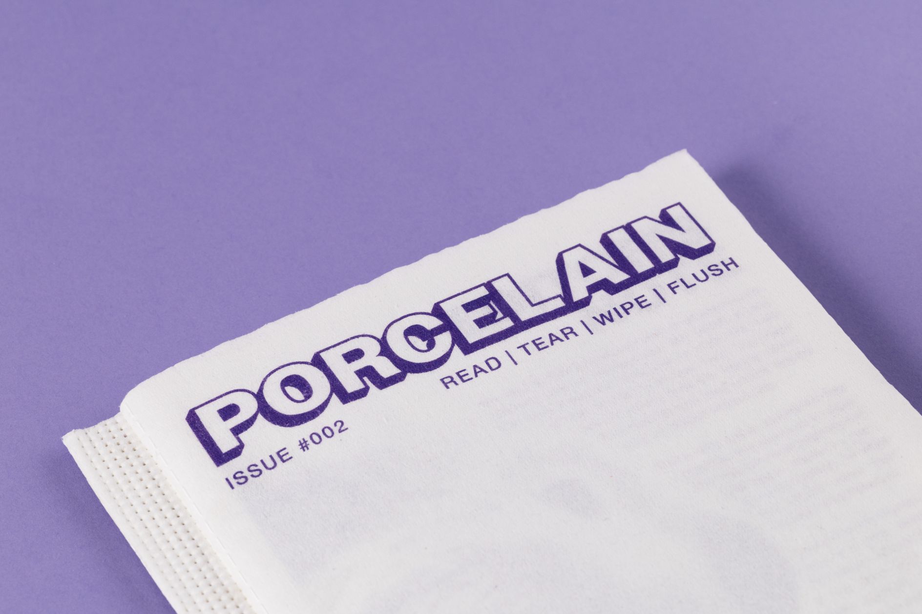 Baptisé “Porcelain”, ce magazine en édition limitée est entièrement imprimé sur du papier toilette de la marque. Chaque page est perforée pour pouvoir être lue, détachée… puis utilisée et jetée sans problème.