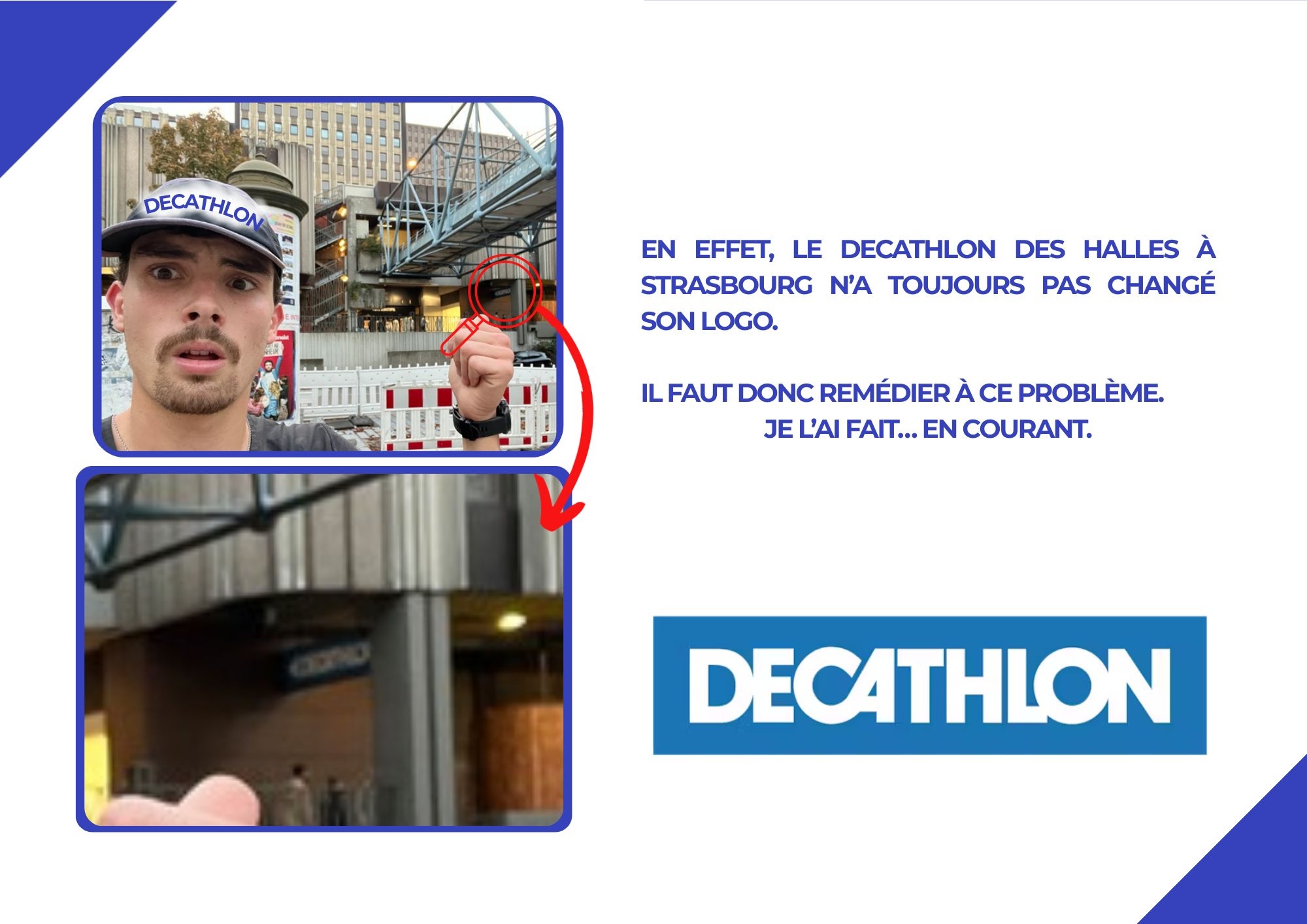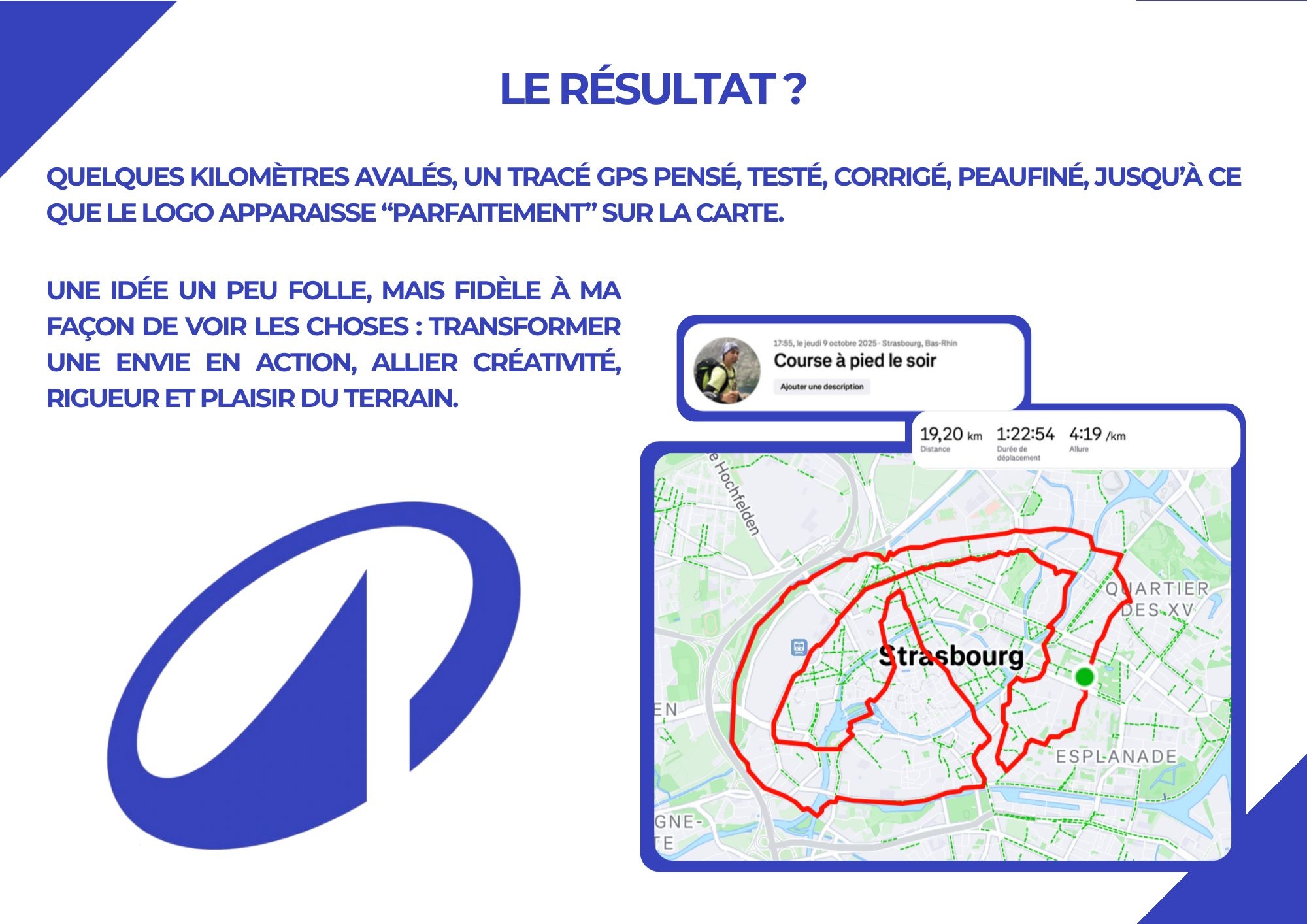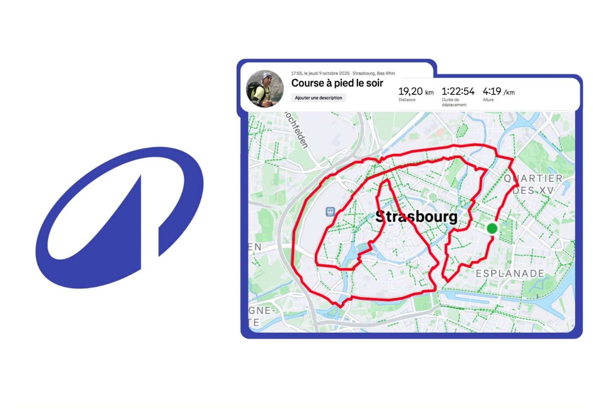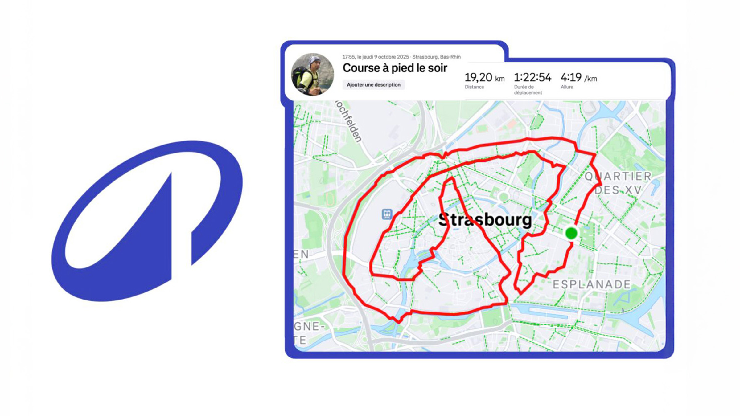 Le projet naît d’un constat aussi anodin que drôle : le magasin Decathlon des Halles à Strasbourg n’a pas encore mis à jour son logo. Plutôt que d’en rester à ce détail, Thibaud en fait une mission. Armé de son application Strava, il planifie un tracé GPS capable de reproduire le nouveau symbole de la marque à l’échelle d’un quartier entier.