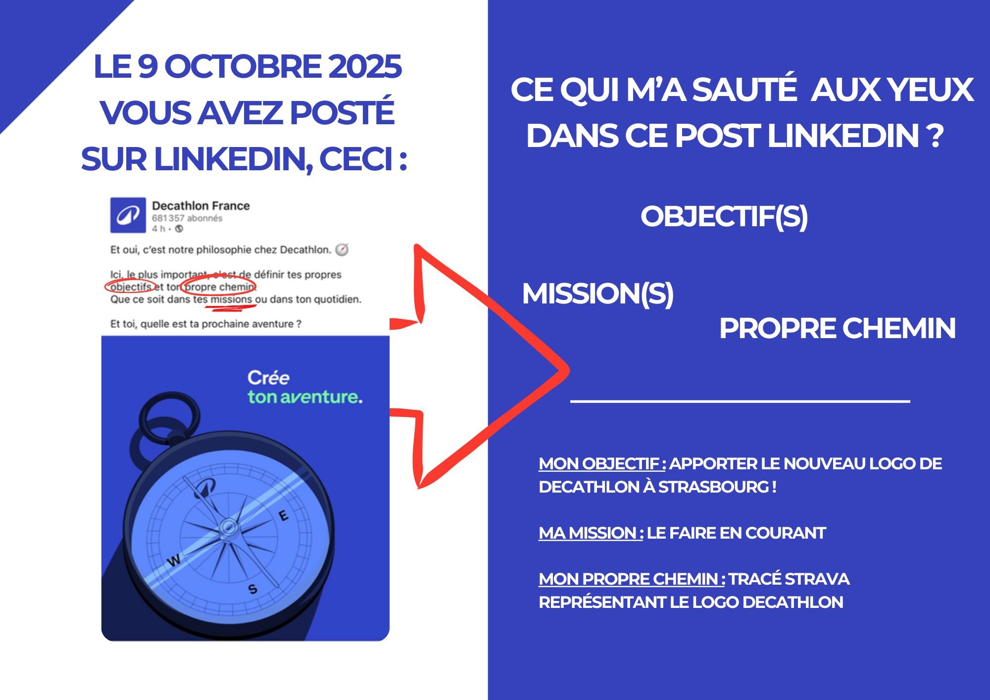 • Pour attirer l’attention de Decathlon, l’étudiant Thibaud Le Gal a imaginé une candidature folle et ultra créative : dessiner le logo de la marque en courant, grâce à un tracé GPS Strava dans les rues de Strasbourg.