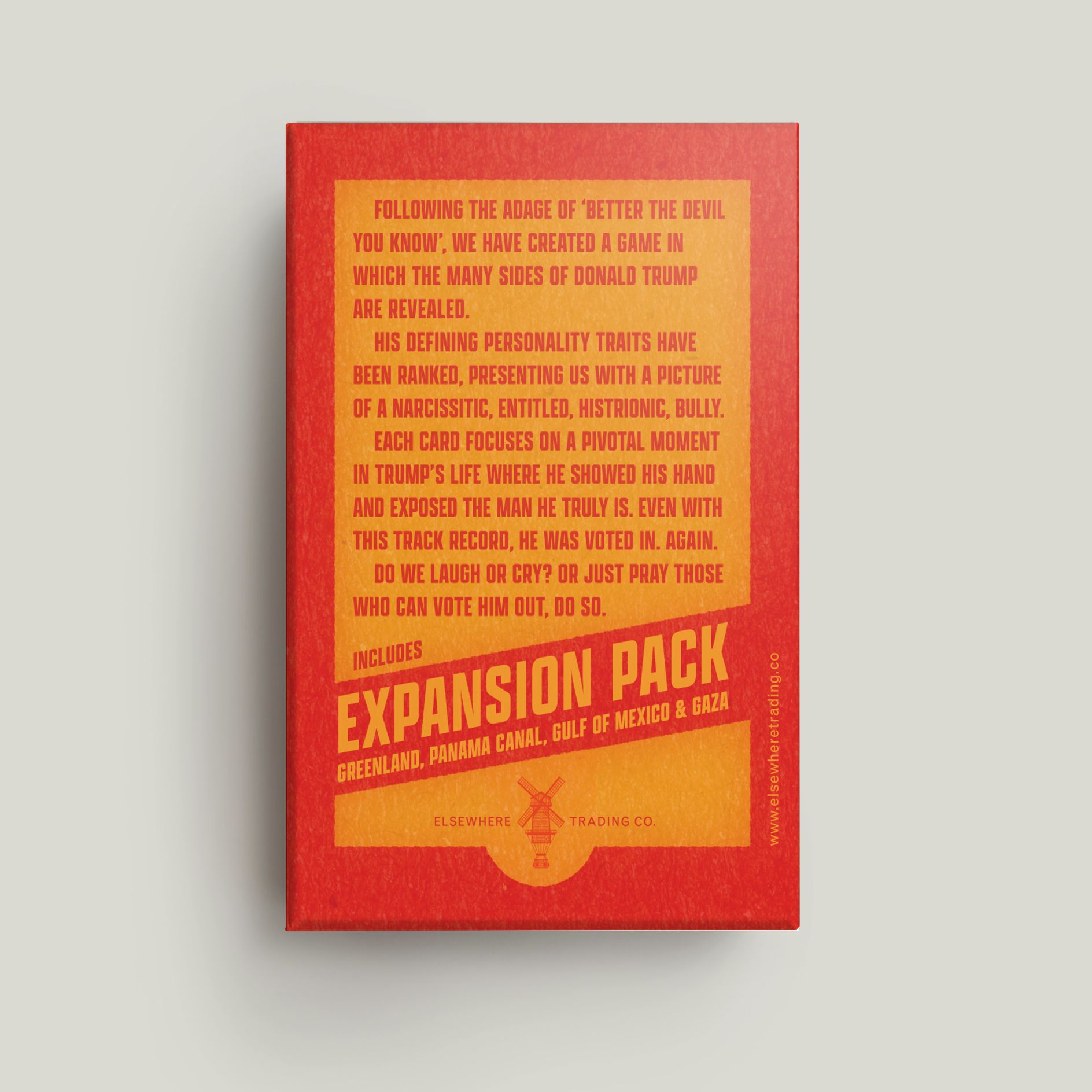 Chaque carte du jeu s’appuie sur un moment emblématique de la trajectoire médiatique et politique de Donald Trump, qu’il s’agisse de ses années The Apprentice ou d’affaires largement relayées par la presse. Ces événements sont traduits visuellement à travers des illustrations volontairement caricaturales, inspirées des codes du dessin politique.