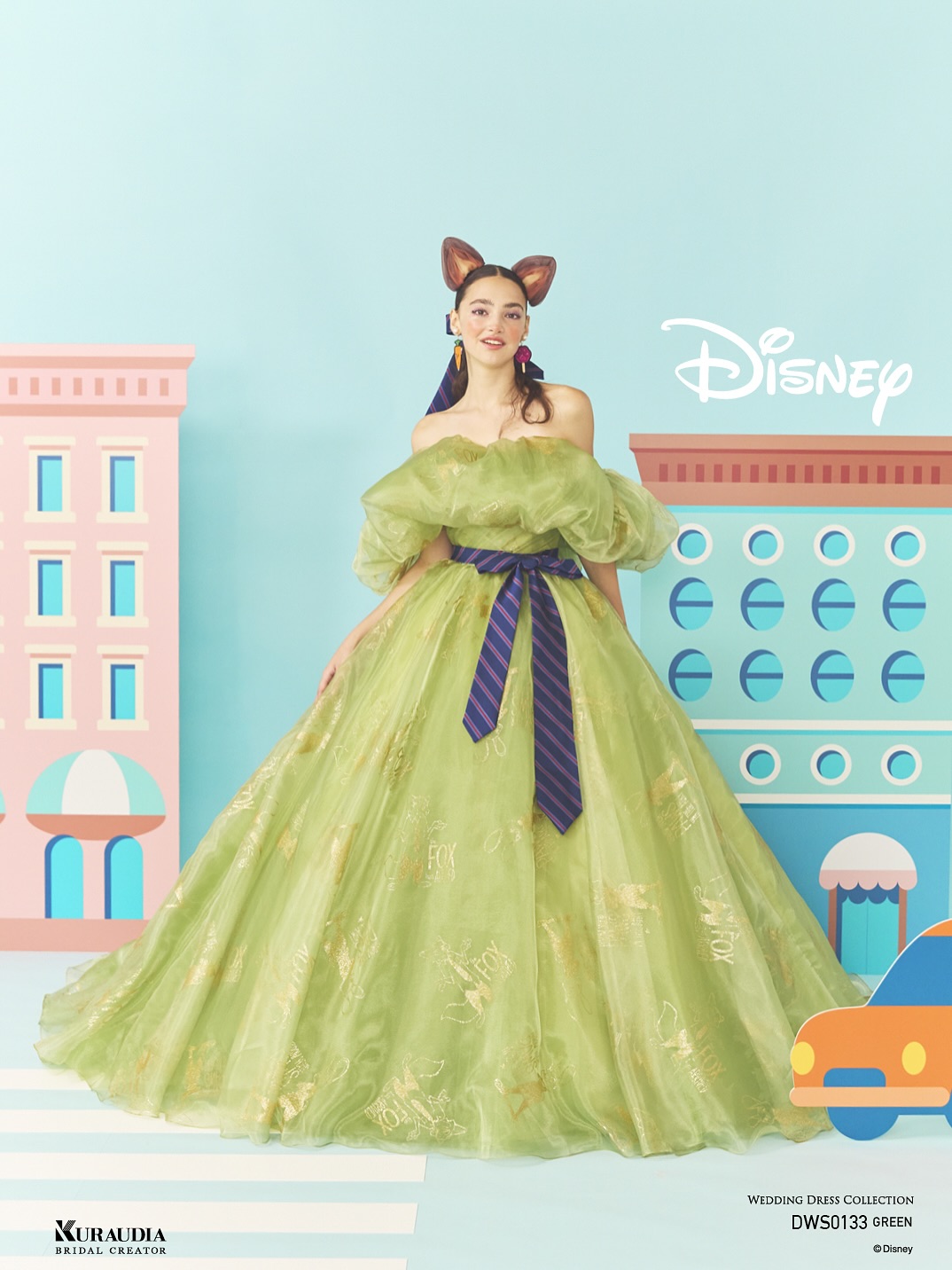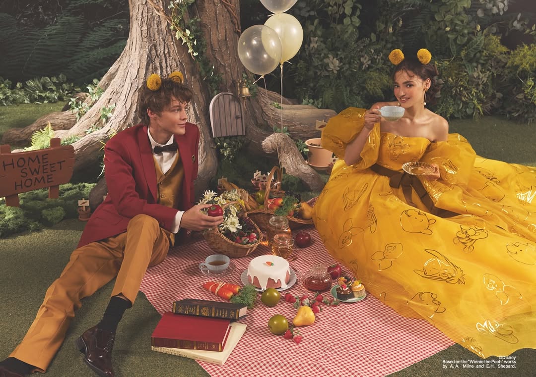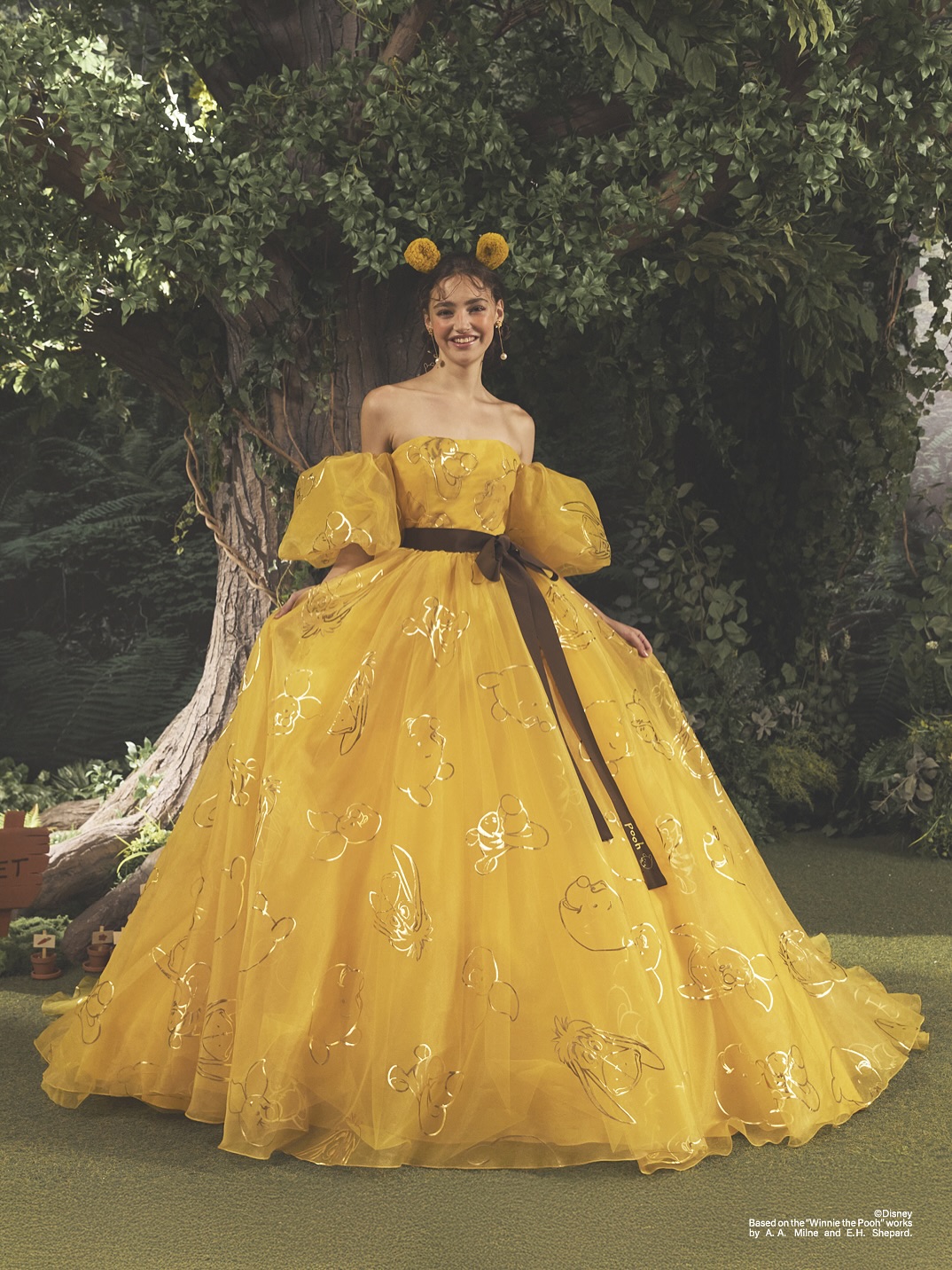 La magie ne s’arrête pas aux princesses. La collection s’étend aussi à des univers plus inattendus : un modèle Zootopia revisite l’énergie urbaine du film avec des lignes modernes et un costume assorti qui rappelle subtilement l’esthétique des personnages. Autre clin d’œil, la robe Winnie l’Ourson joue sur la nostalgie avec des tissus couleur miel, des illustrations scintillantes et une douceur réconfortante inspirée de la Forêt des Rêves Bleus.