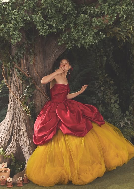 La collection revisite huit princesses légendaires, de Cendrillon à Aurore, en passant par Tiana, Jasmine, Belle, Blanche-Neige, Ariel et Raiponce, avec des robes qui oscillent entre fidélité aux dessins animés et réinterprétations contemporaines. Certaines créations, comme celles de Cendrillon ou Belle, reprennent fidèlement les couleurs, les manches bouffantes et les finitions satinées de leurs versions animées. D’autres s’autorisent plus de liberté créative : la robe de Blanche-Neige, par exemple, ose un corsage rouge vif rehaussé de touches bleues et de motifs floraux délicats.