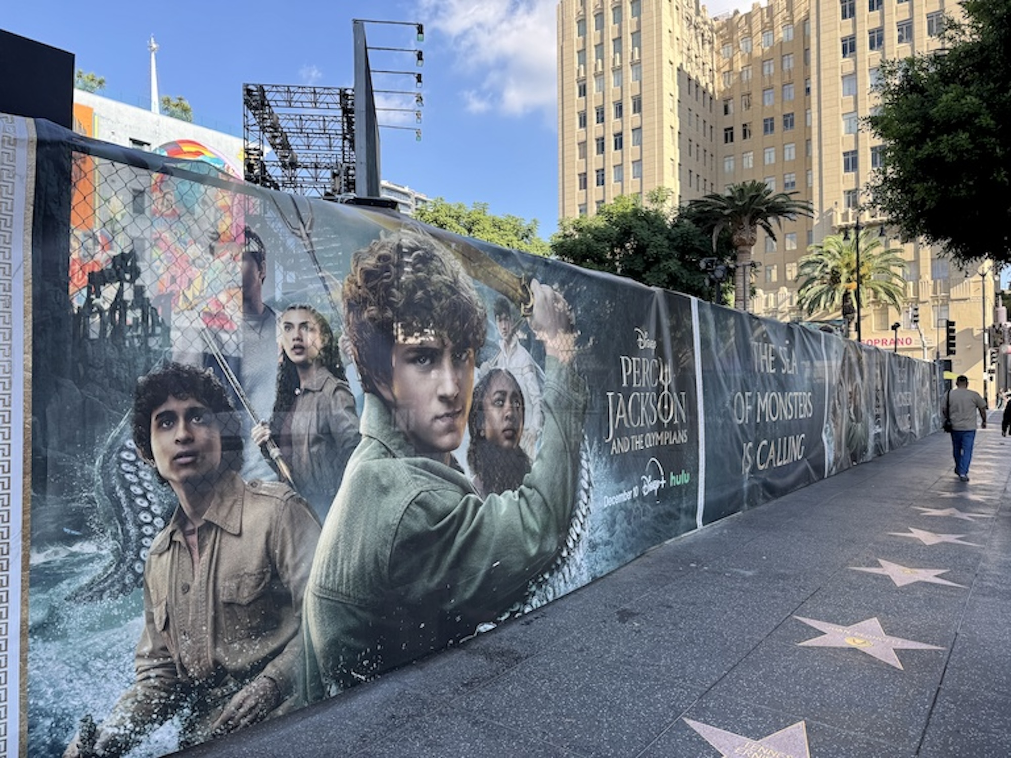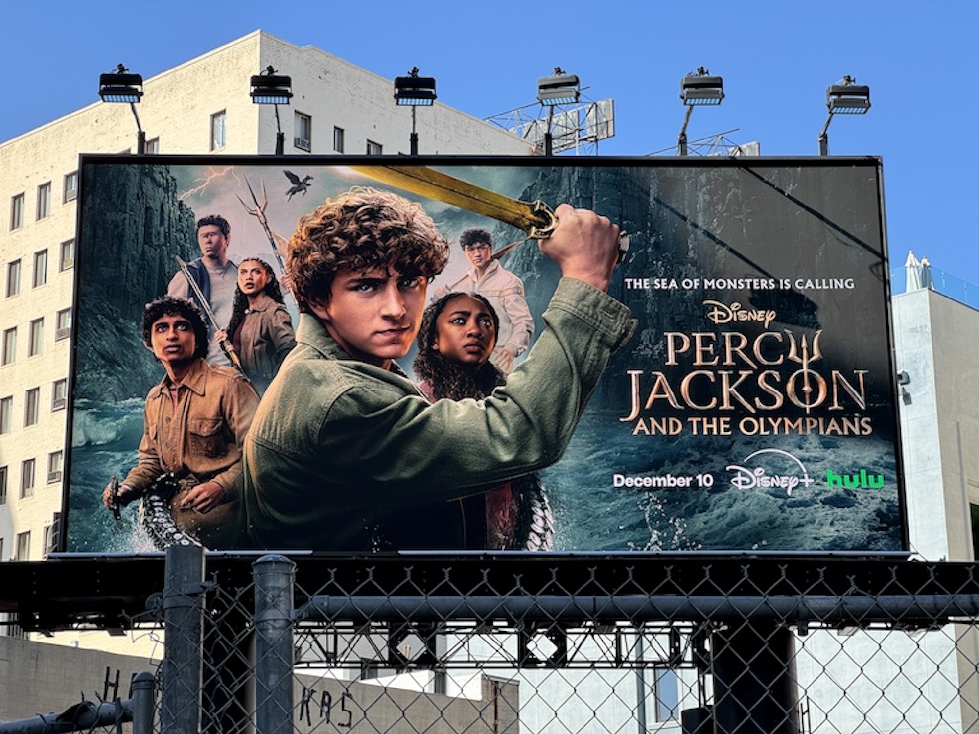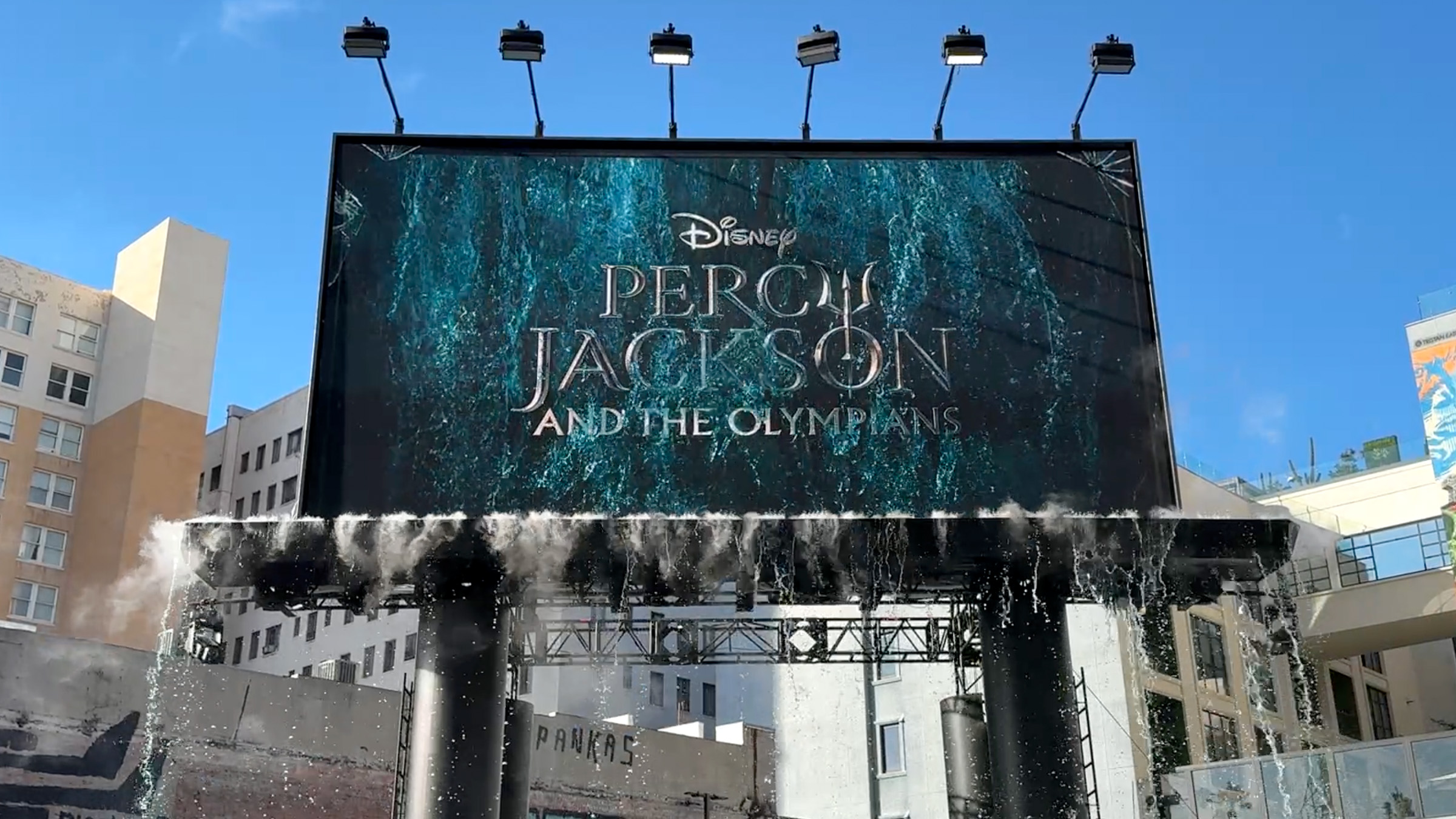 - Pour lancer la saison 2 de Percy Jackson and the Olympians, Disney+ a installé à Hollywood un panneau publicitaire rempli d’eau : une prouesse visuelle digne de l’univers aquatique de la série.