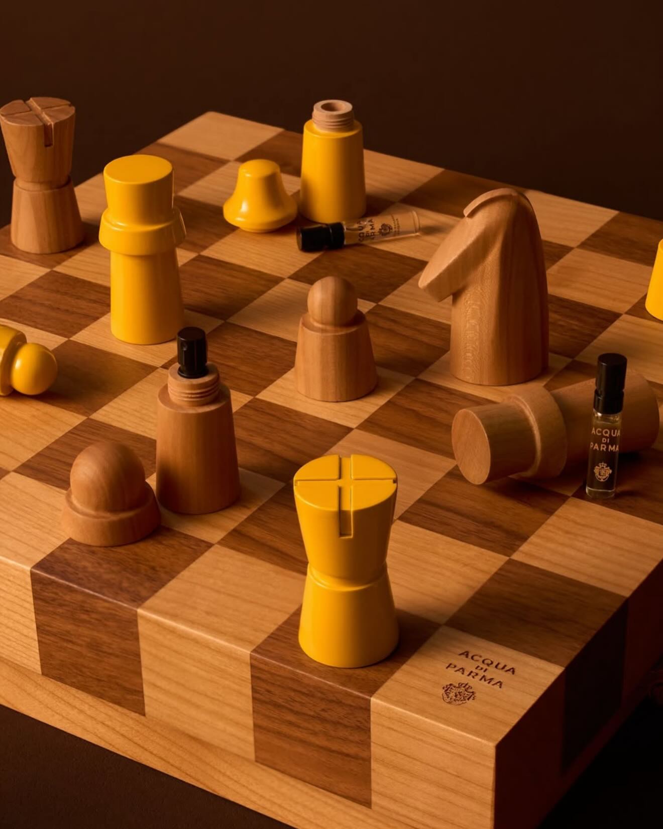 Il y a des objets qui dépassent leur fonction pour devenir de véritables pièces d’art. La maison italienne Acqua di Parma vient de dévoiler l’un de ses projets les plus étonnants : un jeu d’échecs en bois noble dont chaque pièce renferme… une miniature de parfum. Un mélange inédit entre artisanat, design et savoir-faire olfactif, pensé comme un cadeau d’exception pour les fêtes.