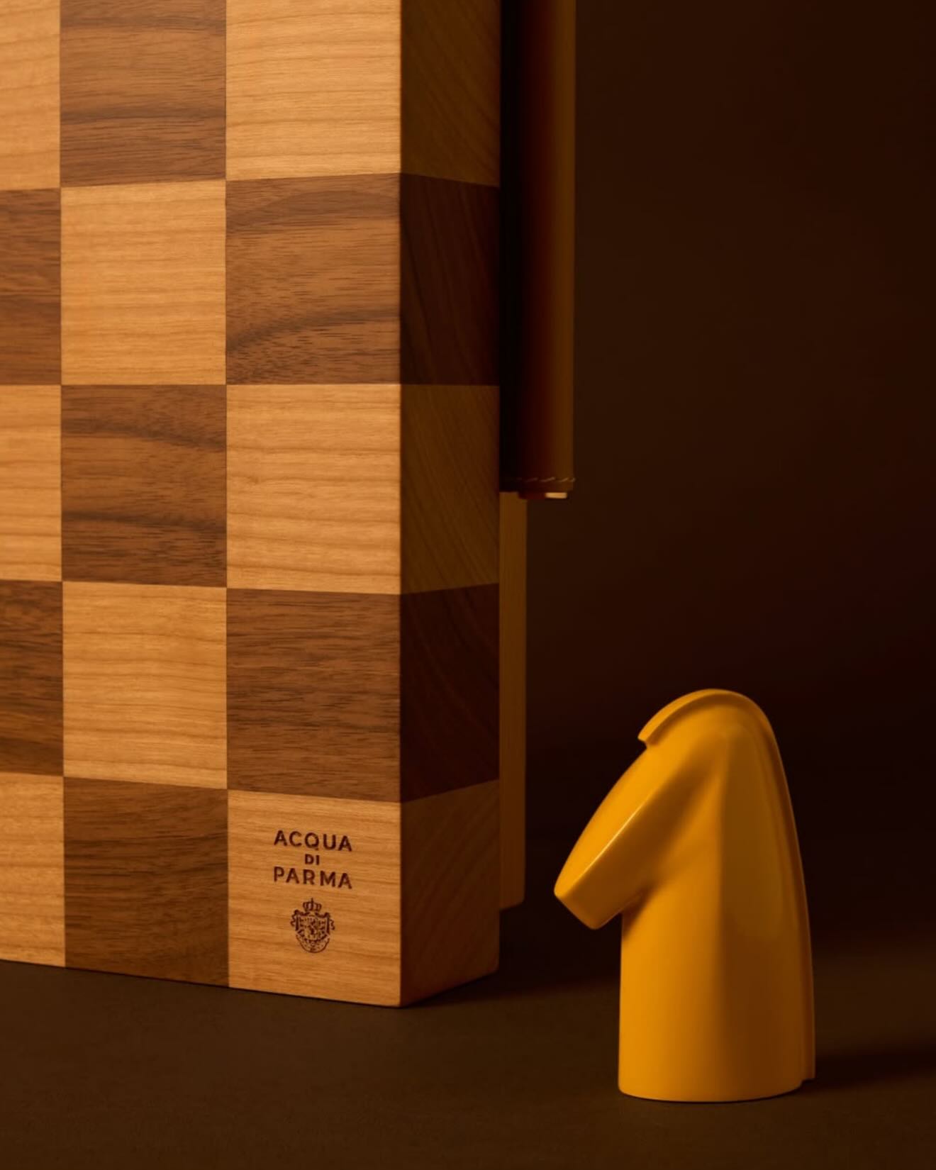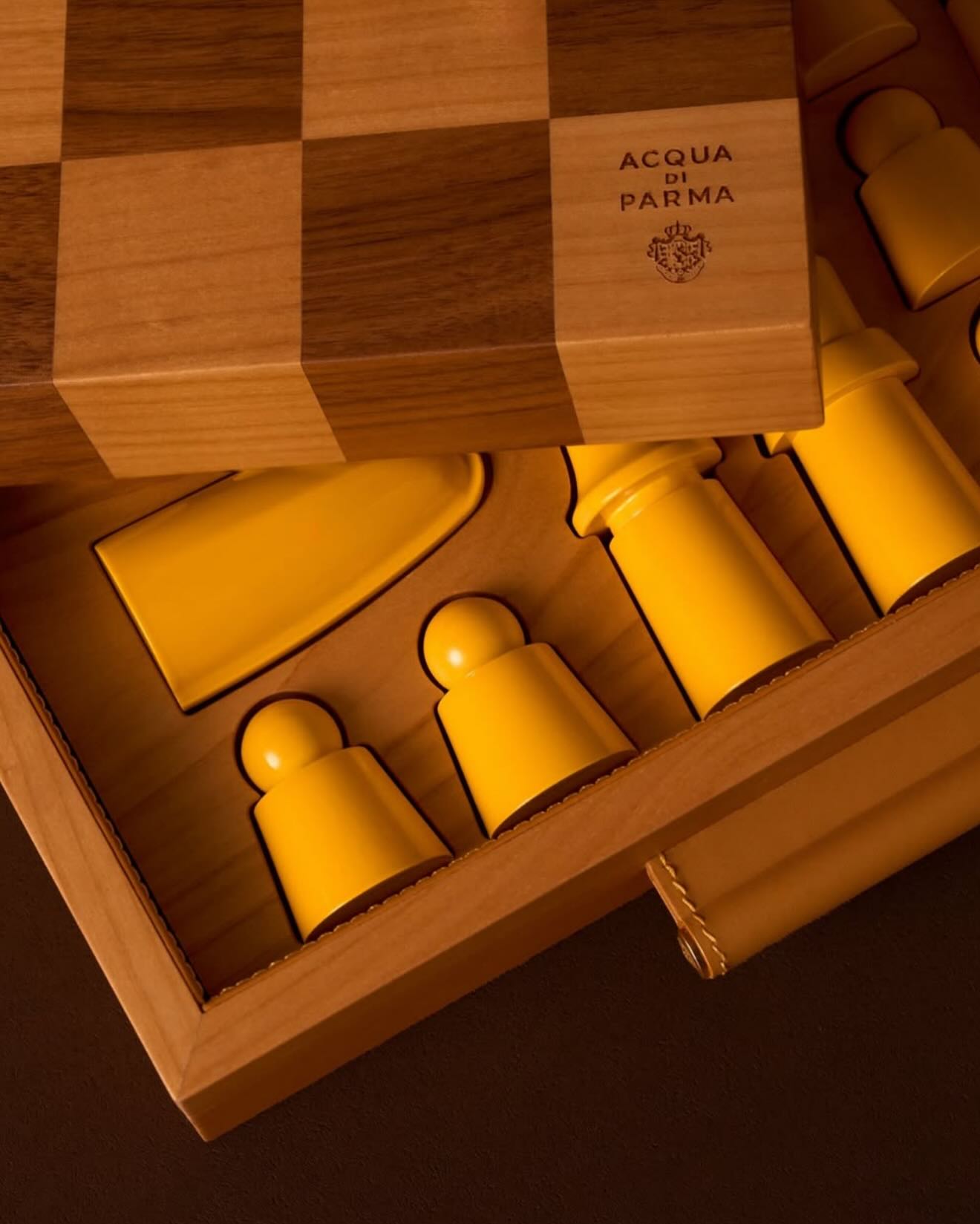 En réunissant l’univers du parfum et celui de la stratégie, Acqua di Parma propose un objet double : ludique et décoratif. On peut jouer une partie comme on peut simplement laisser le coffret trôner dans un salon tant sa présence visuelle est forte.