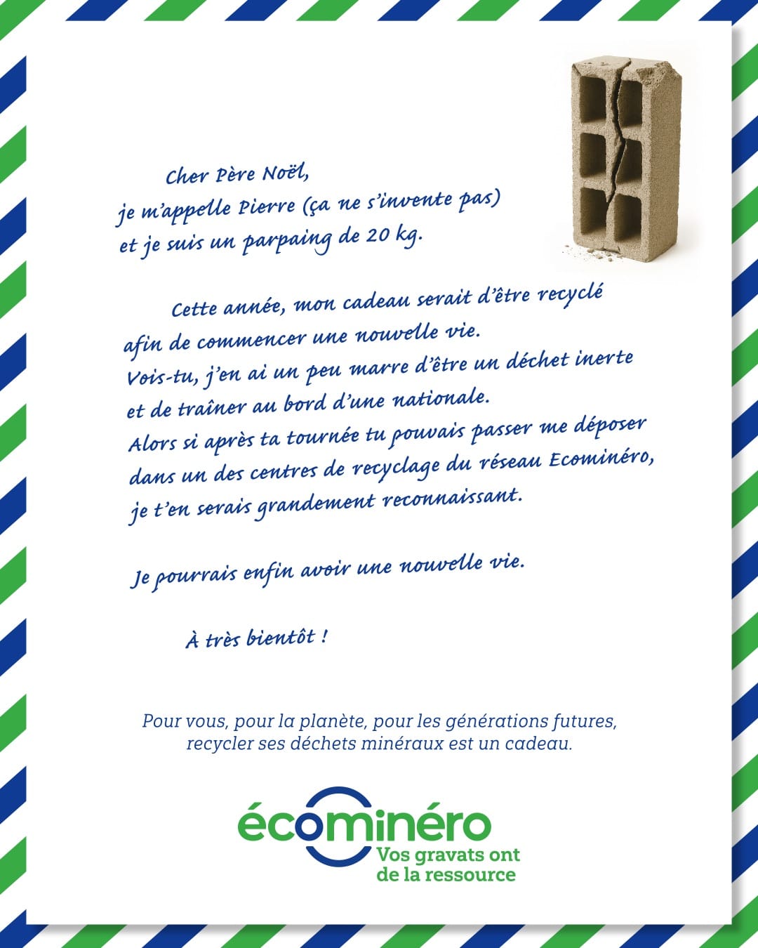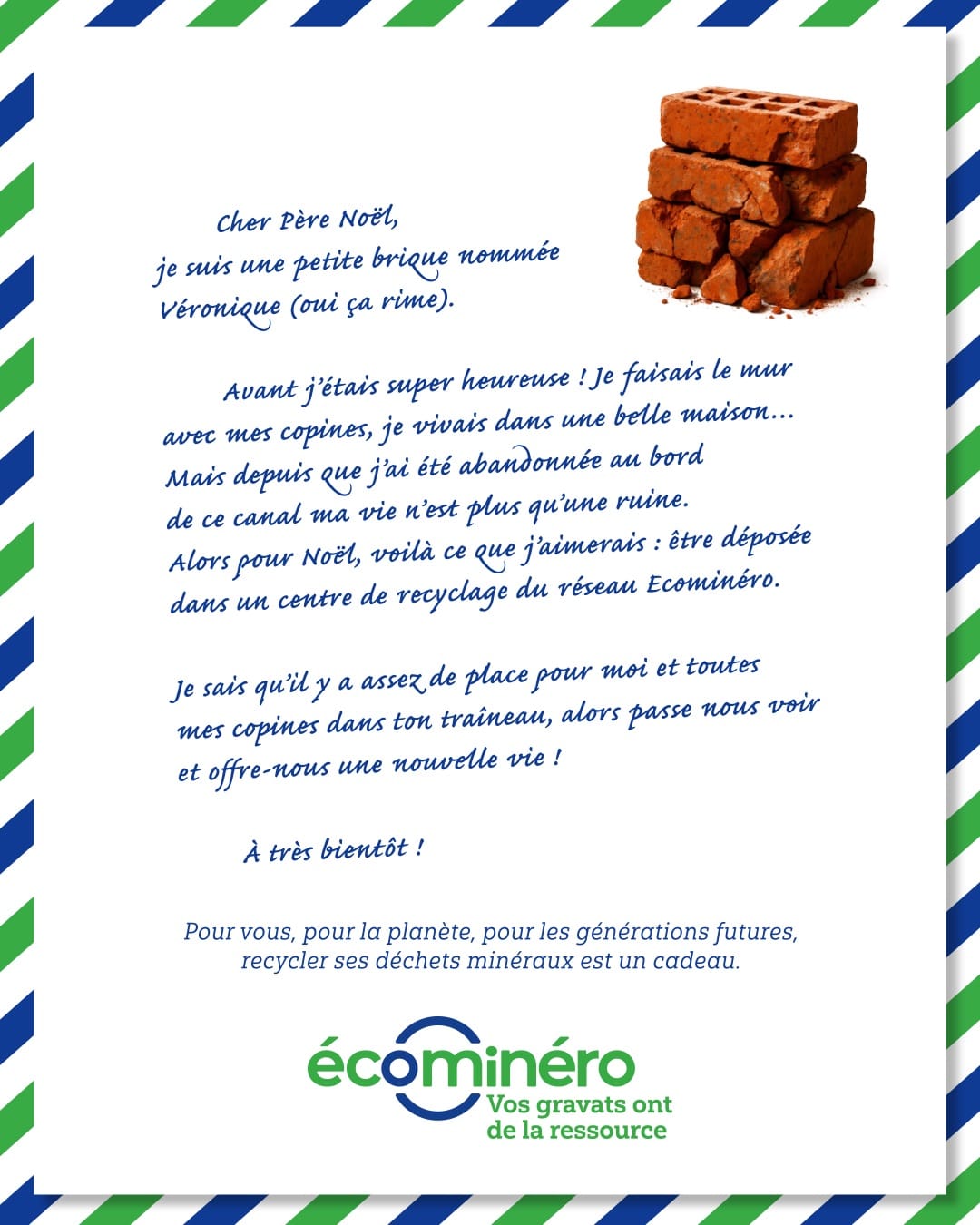 - Ecominéro dévoile un film en stop motion imaginé par l’agence Creapills, où des déchets inertes prennent la parole pour écrire leur lettre au Père Noël et dénoncer les dépôts sauvages.