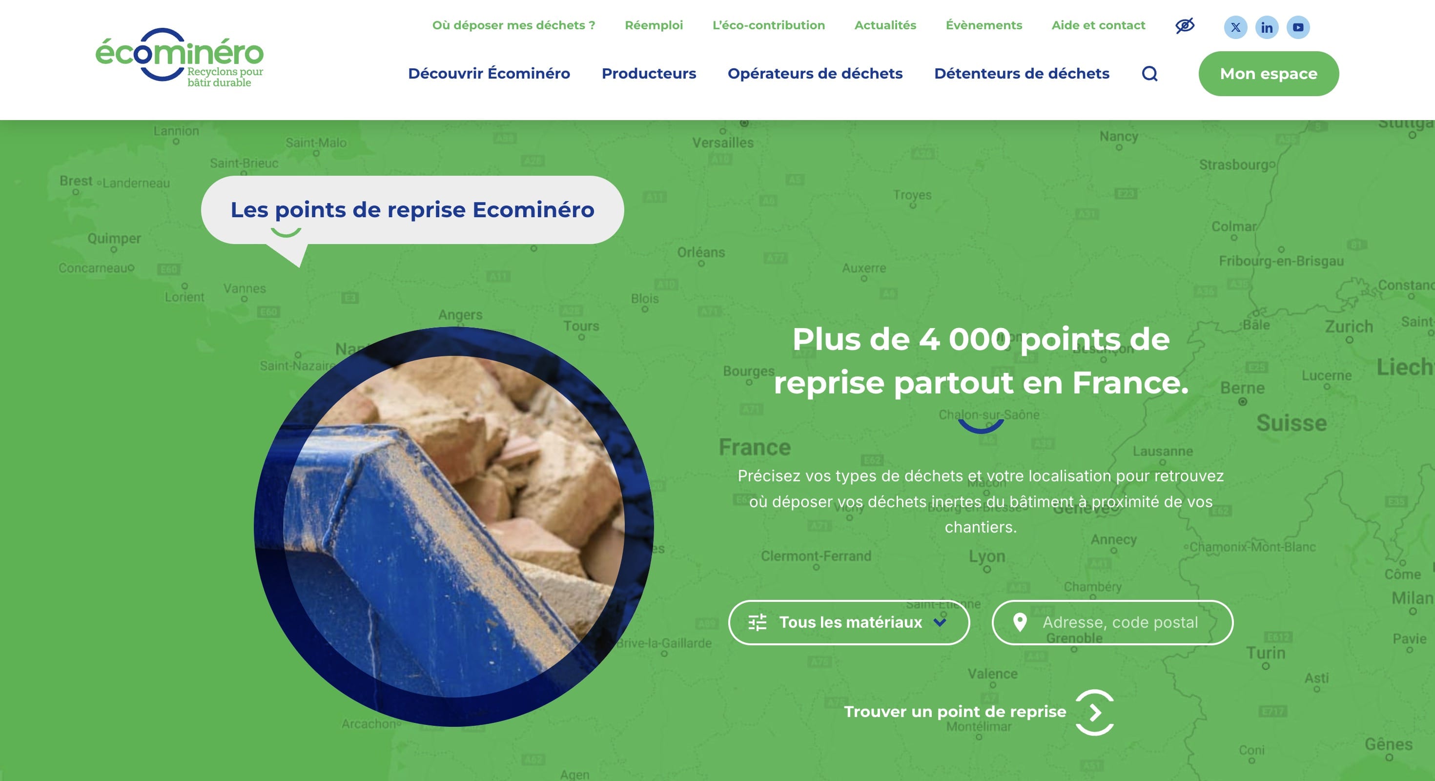 Derrière cette opération, Ecominéro poursuit sa mission d’accélérer l’économie circulaire dans le bâtiment en structurant la filière de collecte, tri et recyclage des déchets minéraux du bâtiment. Avec son réseau de milliers de points de reprise répartis sur tout le territoire, l’éco-organisme facilite la valorisation des matériaux de construction et réduit les dépôts sauvages.