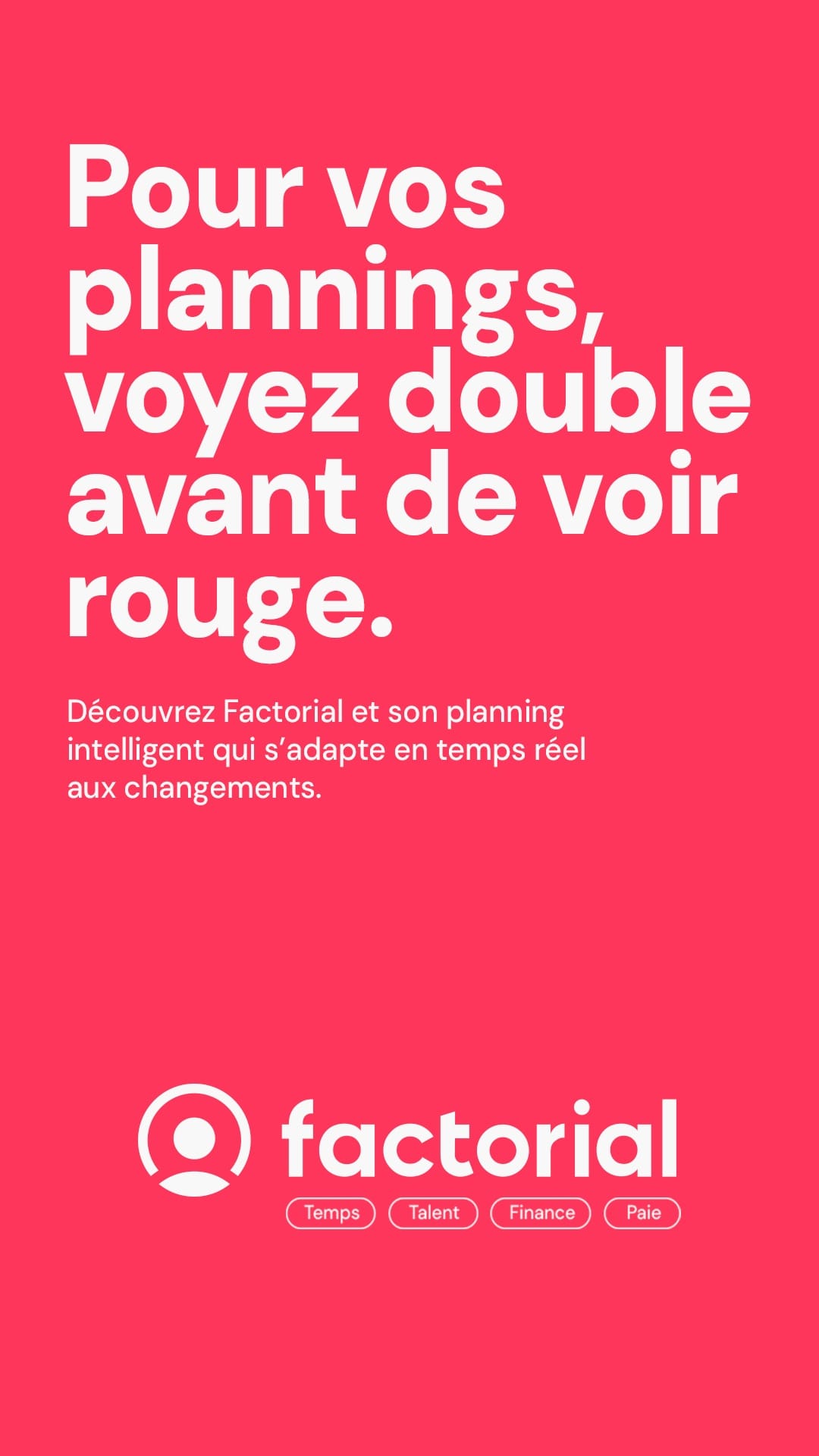 • Factorial est un logiciel de gestion tout-en-un boosté à l’IA qui centralise vos processus RH, le suivi du temps, la gestion des congés et la paie. Il automatise les tâches répétitives pour que vous puissiez consacrer plus de temps à vos équipes et à leurs projets.