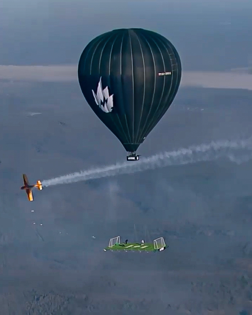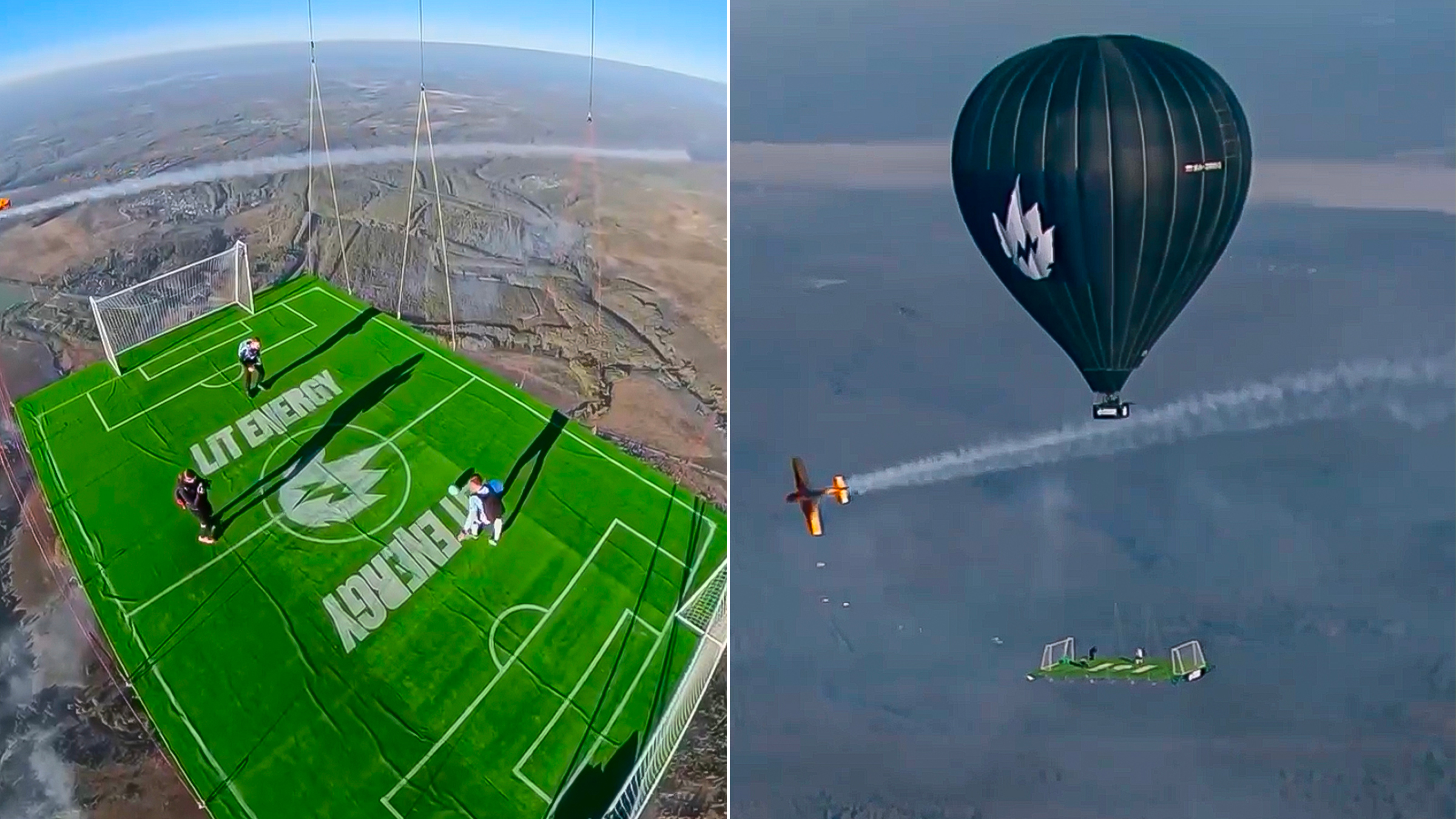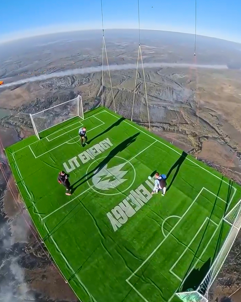 - Un créateur de contenu organise le premier match de football joué sur une plateforme suspendue sous une montgolfière à 1 800 mètres, transformant chaque geste en défi aérien. Une idée entre folie et génie qui réinvente totalement le cadre du jeu.