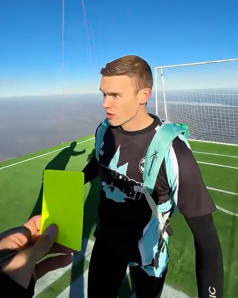 À 1 800 mètres d’altitude, deux joueurs équipés de parachutes s’affrontent sur un terrain miniature suspendu au-dessus des nuages. Une scène surréaliste où chaque geste prend une dimension nouvelle, et où le plus petit contrôle du ballon semble chargé d’adrénaline.