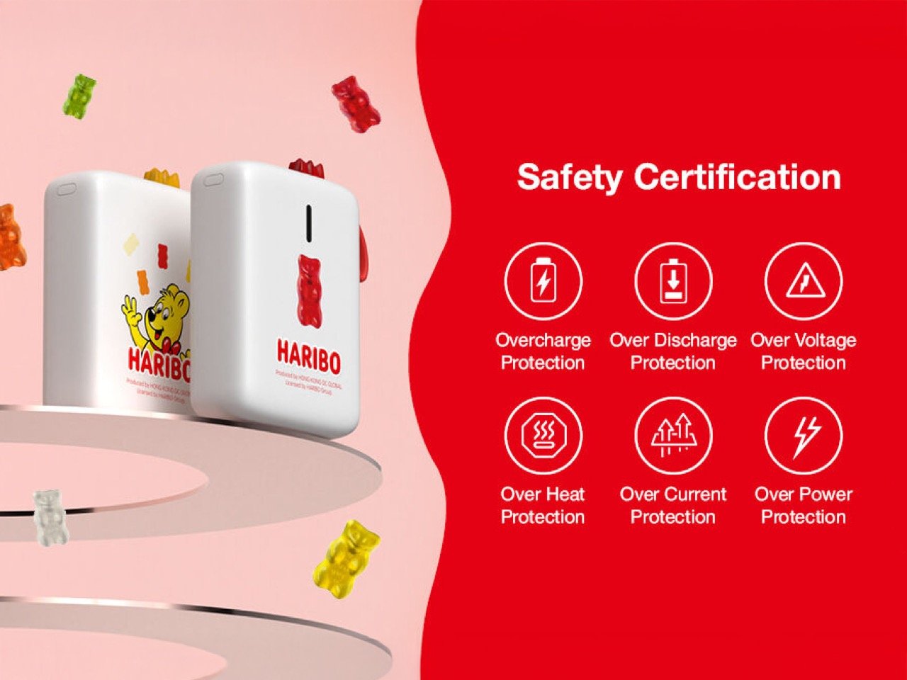 Derrière son design simple et mignon, la batterie externe Haribo affiche un poids record : 280,6 grammes seulement pour une capacité de 20 000 mAh. Ici, Haribo réussit l’improbable : un produit deux fois plus léger qu’une mini batterie classique… mais avec une autonomie quatre fois supérieure.