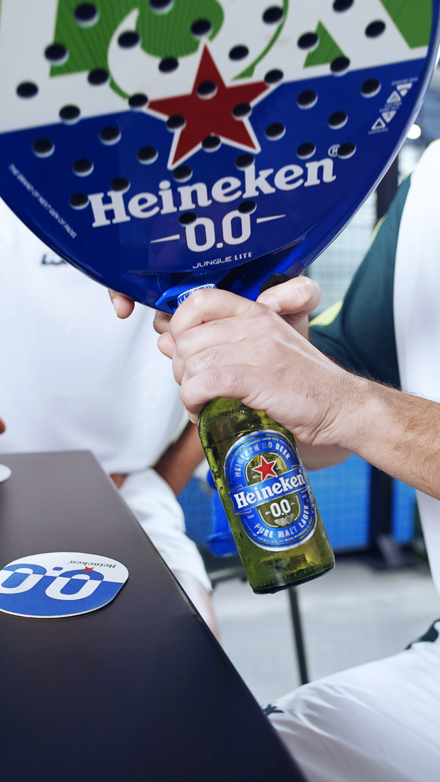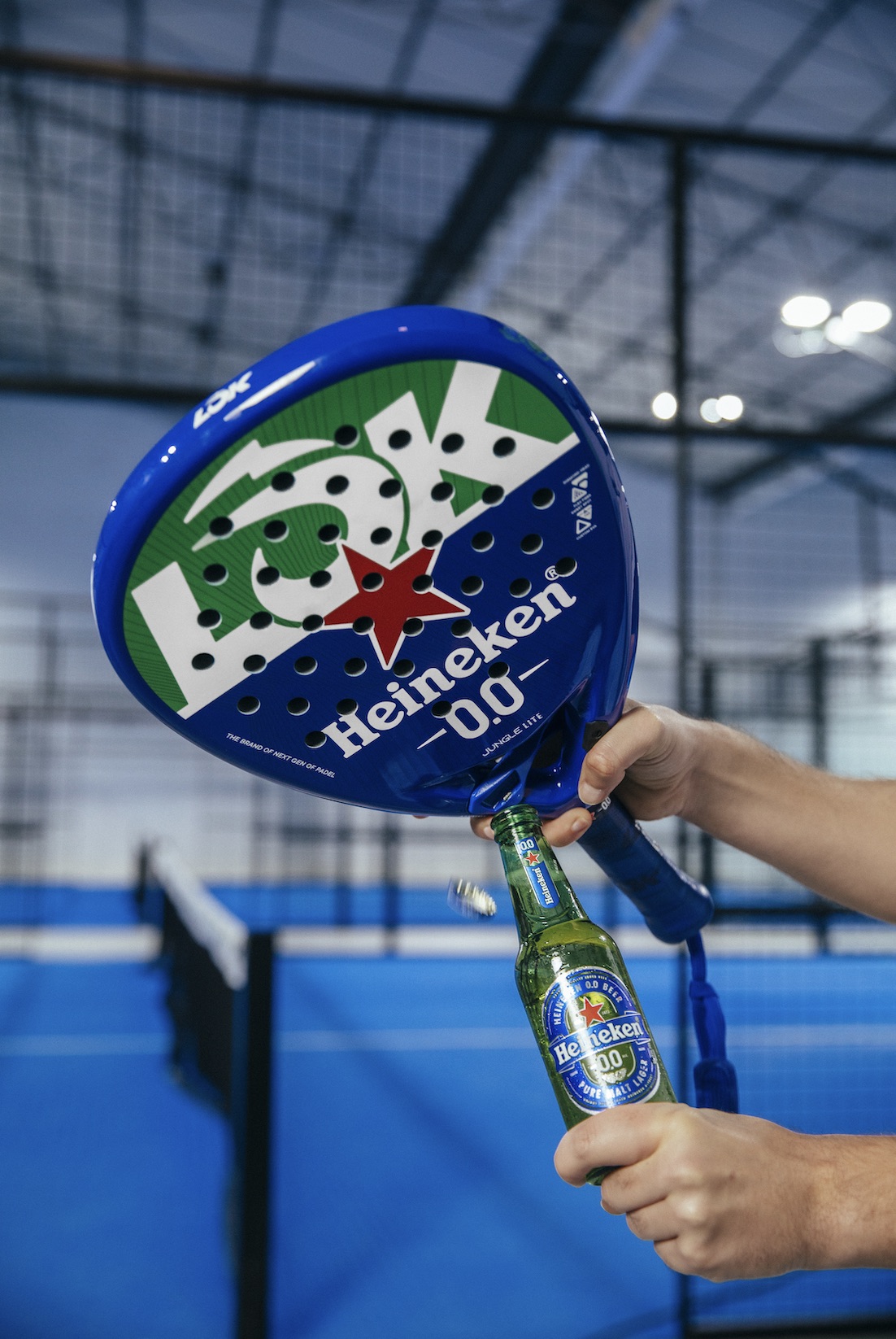 - Heineken 0.0 s’associe à la marque de padel LÕK pour lancer la première raquette avec décapsuleur intégré, un objet aussi inattendu que ludique qui célèbre l’esprit social du sport.