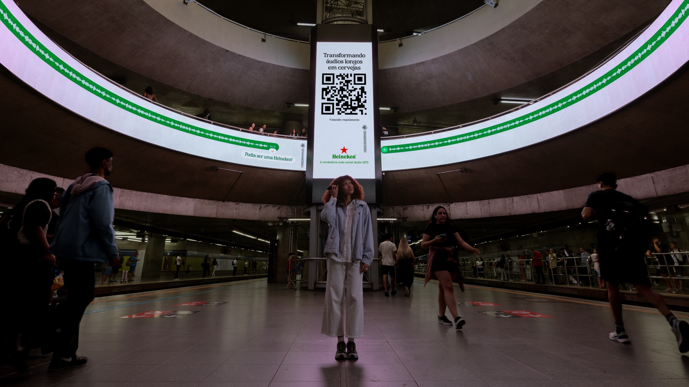 Heineken a choisi de tester l’idée au Brésil, un pays où l’usage des vocaux explose : selon Meta, les Brésiliens en envoient quatre fois plus que dans n’importe quel autre pays. Pour donner de l’ampleur au dispositif, la campagne est accompagnée d’affichage et d’activations sociales pensées pour ancrer l’idée dans la culture locale.