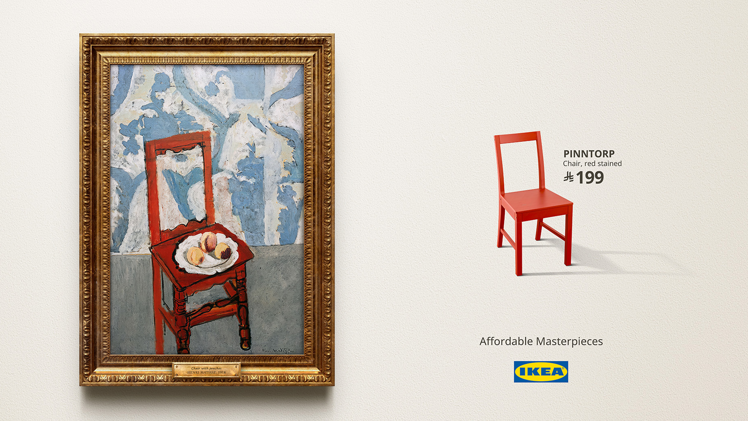 • La campagne Affordable Masterpieces, imaginée avec Memac Ogilvy, crée un parallèle visuel entre des œuvres de grands peintres et des meubles IKEA, pour rappeler que le bon design traverse les époques sans perdre sa pertinence.