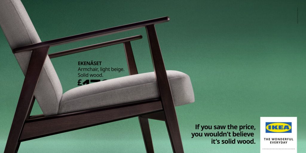 Même du côté créatif, le clin d’œil est assumé : l’idée de faire une campagne de prix… sans prix, devient un commentaire sur nos biais. On a du mal à croire que qualité et petit budget vont ensemble, alors IKEA choisit de le prouver autrement : en laissant la matière parler, et en transformant le silence du chiffre en démonstration de confiance.