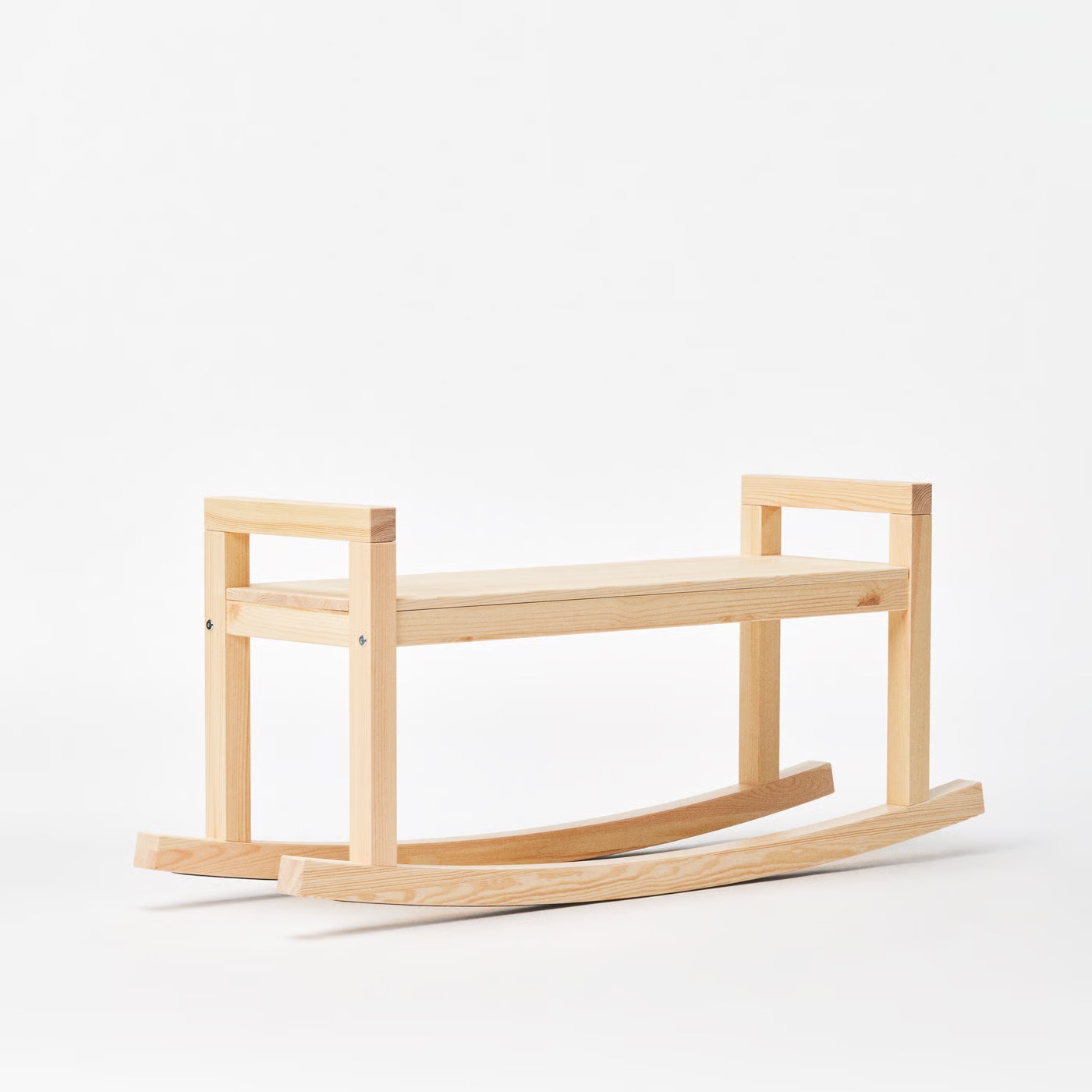 Un banc en bois introduit quant à lui un léger mouvement de bascule, transformant un meuble fixe en expérience plus interactive. Des détails qui traduisent une volonté de rendre les objets plus vivants et moins figés.