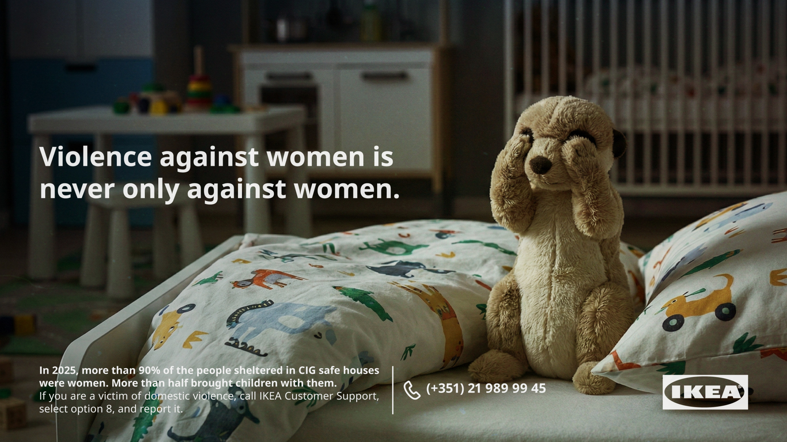 Pour accompagner cette initiative, IKEA Portugal et l’agence Uzina ont lancé une campagne de sensibilisation diffusée à l’occasion de la Journée internationale des droits des femmes. Les visuels mettent en lumière une réalité souvent dissimulée derrière les portes des foyers.