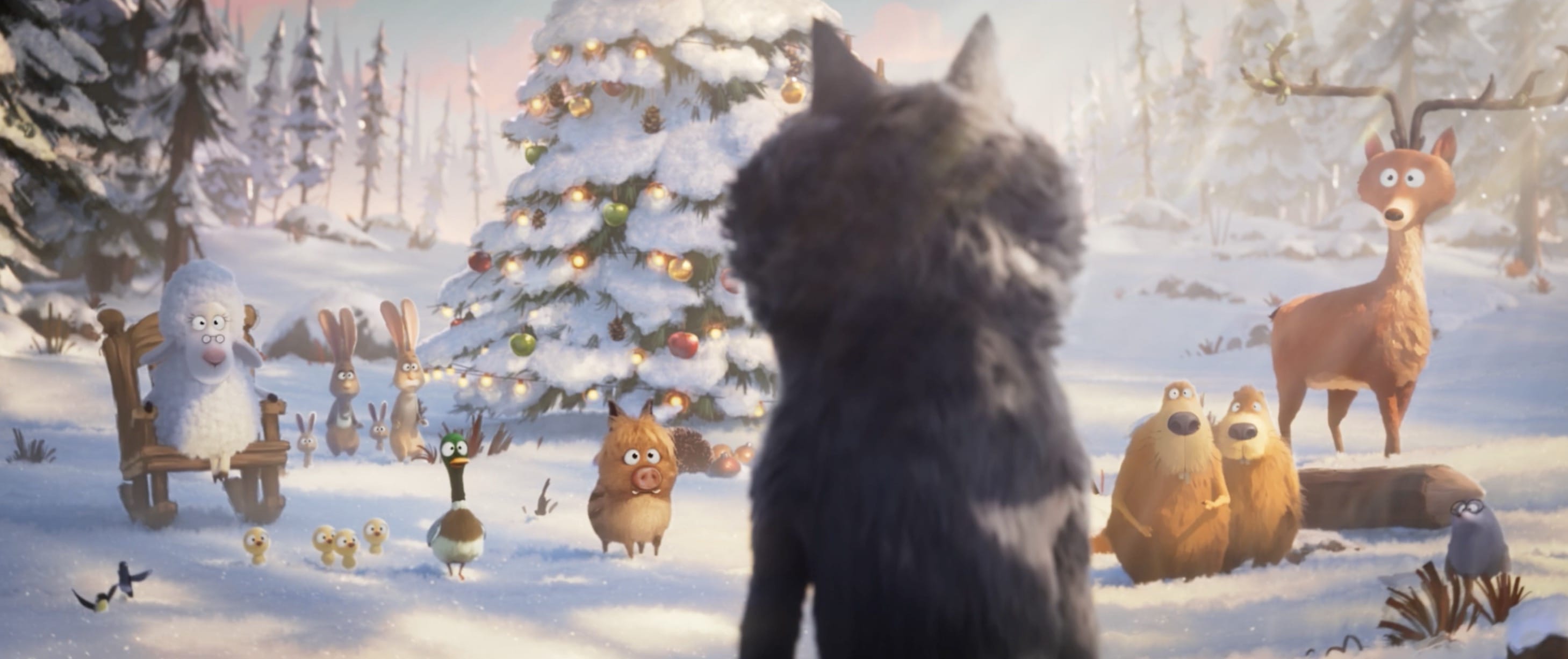 Le film démarre au pied du sapin. Un enfant reçoit une peluche de loup mais peine à s’attacher à cet animal symboliquement associé à la peur. L’imagination prend alors le relais et transforme ce loup effrayant en personnage touchant qui veut devenir meilleur en apprenant à mieux manger. Cette bascule ouvre les portes d’un monde merveilleux où l’alimentation devient vecteur de lien social plutôt que motif d’inquiétude.