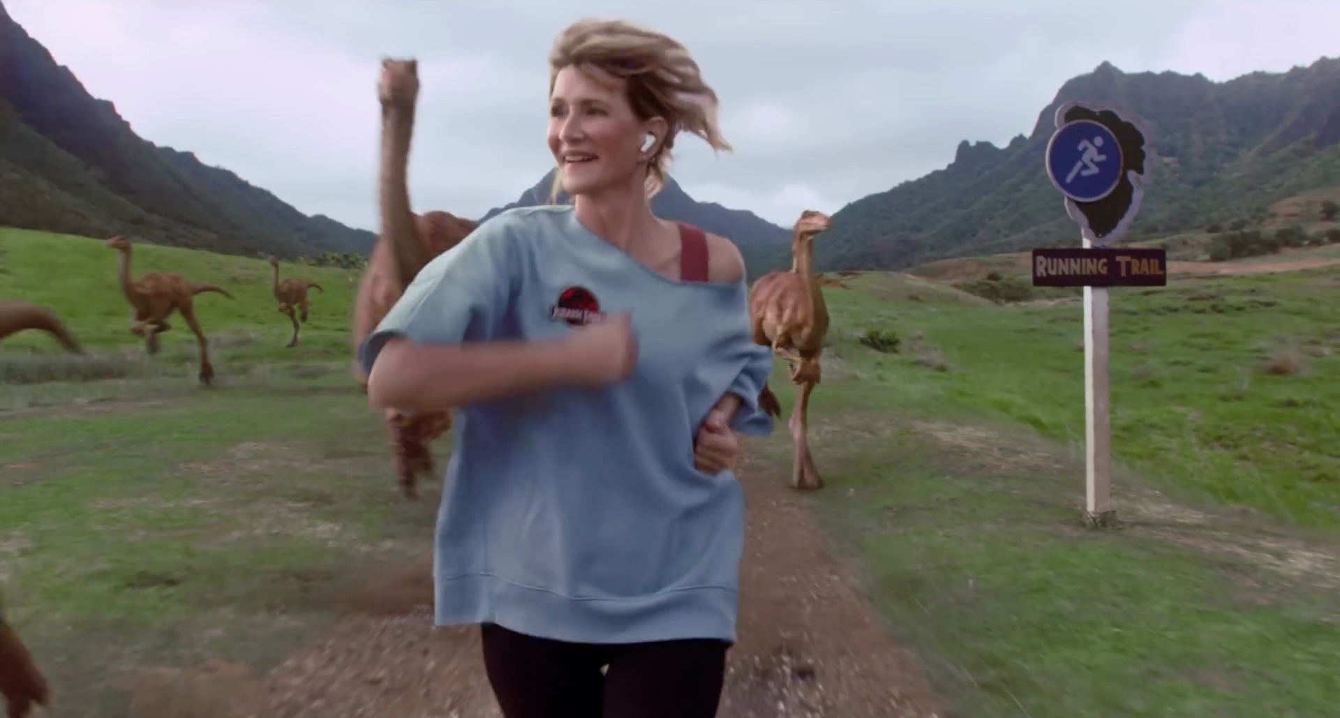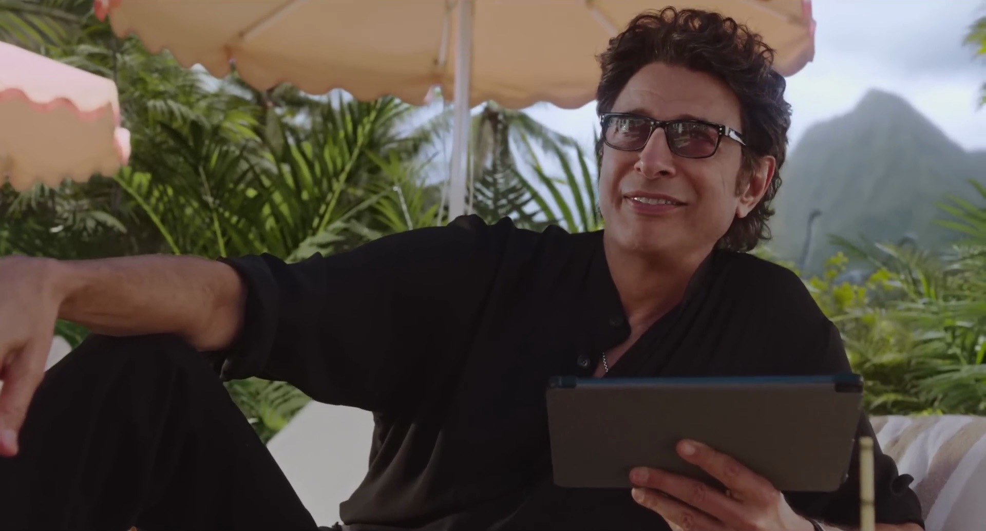 Xfinity a rappelé les visages iconiques du film de 1993 : Sam Neill, Laura Dern et Jeff Goldblum reprennent leurs rôles d’Alan Grant, Ellie Sattler et Ian Malcolm. Une réunion qui suffit à déclencher un réflexe pavlovien chez plusieurs générations de spectateurs, et à installer instantanément l’ambiance de l’œuvre originale.